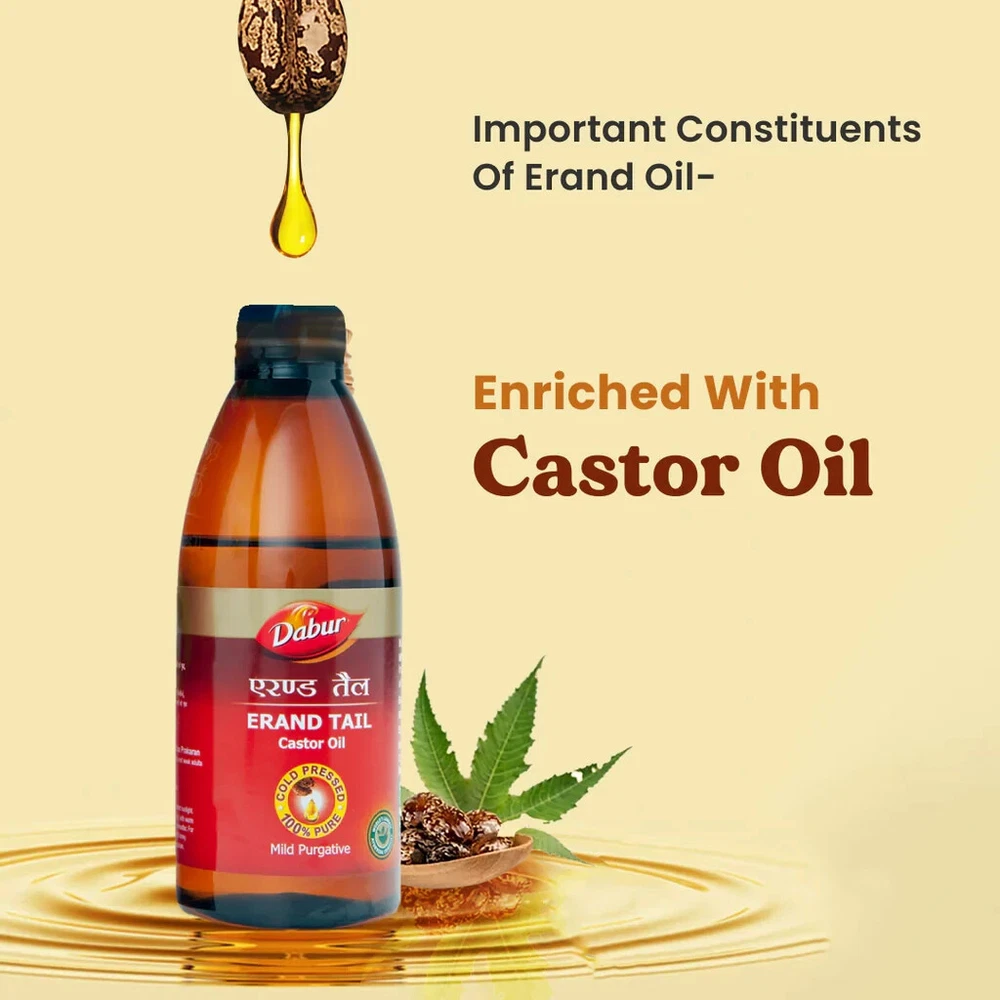 3x Dabur Erand Tail Pure Cold Pressed Castor Oil 100% Herbal 100ml Each (FREE SHIP) Dabur Erand/Castor Tail is a cold-pressed castor oil that is 100% pure and natural. It is formulated to provide effective relief from constipation. The main ingredient in Dabur Erand/Castor Tail is pure castor oil (Erand Tail), derived from the seeds of the Ricinus communis plant. Key Ingredients: Erand Tail (Castor Oil) Indications: Dabur Erand/Castor Tail is primarily indicated for the relief of constipation. Key Benefits: Dabur Erand/Castor Tail is known for its mild purgative properties and is indicated for the relief of constipation in children, weak adults, and elderly individuals The oil is believed to improve intestinal functioning and promote regular bowel movements Dabur Erand/Castor Tail is said to nourish the hair and promote hair growth when applied topically. It is also claimed to make the skin smooth, remove acne, and reduce wrinkles Castor oil, the main ingredient in Dabur Erand/Castor Tail, contains ricinoleic acid, which is believed to inhibit viruses and bacteria. It is considered a natural remedy for acne Dosage: For adults: Consume 2 to 4 teaspoonfuls (8 ml to 16 ml) with warm milk For children: Consume one teaspoonful (4 ml) with warm milk or honey For infants: ½ teaspoonful (2ml) with warm milk