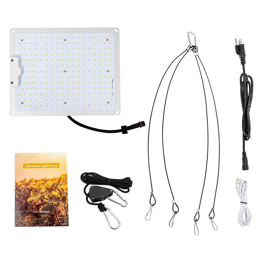 3x3 Ft Indoor Plant Growth High Coverage Grow Light 110w Full Spectrum Led Grow Light 110w Full Spectrum Led For Indoor Plant Growth 3x3 Ft High Coverage Description The LED grow light is an important element in our latest complete planting system. A simple setup allows you to immediately plant plants in a tent or room. Key Features Ideal Indoor Gardening: It is a good choice for growers to obtain high yields indoors. It can help herbs, flowers, bonsai trees, and edible vegetables grow more healthily. Powerful LED Light: This product has 2.7 μ Mol/J luminous efficiency, which can provide powerful light output, and bring higher yield to your plants. It also uses the industry-leading LM301B LED light and a high efficiency driver, with a service life of more than 50000 hours. Low Cost: This product has low operation costs and only requires 110 W of power. It will not consume a lot of your energy, allowing you to save more on planting costs. High Security: This product adopts an IP65 waterproof LED light board, which can safely deal with the humidity in the tent. And the product weighs only 3.97 lbs, so you don't have to worry about its suspension safety. High-quality Material: This product uses a high-quality aluminum plate as raw material. It has the properties of high hardness, corrosion resistance, and rust prevention, which can effectively extend the service life of products. Full Spectrum Growth Light: The full spectrum growth light consists of 3000K, 5000K, 660nm, and 760nm (i.e. white light, warm white light, red light, and far red light). It is close to the role of sunlight and is suitable for plants at various growth stages. Dimmable: This product uses a dimming knob, which can freely adjust the light intensity within the range of 0-100%. It can provide necessary lighting for plants at stages from seedling to flowering. For example, the intensity in the germination period is 20-40%; The sowing intensity was 40-60%; The vegetables planting intensity is 60-90%; The planting intensity of flowers is 90-100%. High-Efficiency Heat Dissipation: This product is equipped with a high-quality heat dissipation aluminum plate, so you no longer need to worry about it being burned or damaged. Excellent heat dissipation can ensure the safety of use. Low Noise: This product uses a high-quality driver, which is not equipped with a fan, so there is almost zero noise. Low noise can provide you with a more quiet and comfortable working environment. Details Hanging Kit: The package of this product contains a hanging kit, which can firmly fix the lamp panel and adjust the hanging height of the lamp panel at will. Driver: The driver is reliable. It continuously supplies power to the LED panel with excellent performance of safety and quiet. One Button Switch: The dimmer of this product adopts the design of one button switch. It is easy to operate and can be used even if you are not a professional grower. Application Lighting and accessories can help you take your hobby to the next level. You can make plants grow on tables, stands, terraces, and cabinets. It is suitable for planting tents, commercial planting rooms, hydroponic farms, etc. The lighting area is 3x3ft in the growing period and 2x2ft in the flowering period. Specification Material: Aluminum Color: White Room Type: Tent Switch Style: Dimmer Light Source Type: LED Style: Grow Tent/Room Switch Type: Single Control Switch Indoor/Outdoor Usage: Outdoor, Indoor Plug-in Standard: US Standard Watt: 110W Frequency: 50/60Hz Voltage: AC100-277V PPE:2.7μmol/j PPF:299μmol/S Footprint:2x2FT Temperature:-20~40℃ / -4~104℉ Lifespan: >50000h IP Rate: IP65 Certication: ETL/CE/ROHS Driver: Meanwell ELG Driver LED Qty.: Samsung lm301b 3000K+5000K (210pcs), Osram 660nm(8pcs), Osram 730nm(2pcs) Lighting Area: 0.9x0.9m/3x3ft in Growth Period, 0.6x0.6m/2x2ft in Flowering Period Full Spectrum: 3000K, 5000K, 660nm, 760nm (i.e. White Light, Warm White Light, Red Light, and Far Red Light) Assembly Required: Yes Gross Weight: 2kg/ 4.41 lbs Net Weight: 1.8kg/ 3.97 lbs Product Size(L*H): 30*24cm/ 11.8*9.44in Thickness of Driver and Aluminum Substrate: 5.5cm/2.16in Package Size: 33*27*11cm/ 12.99*10.63*4.33in Package Included 1 * LED Grow Light 1 * English Manual 1 * Power Cord with Plug 1 * Hanging Kit 1 * Adjustable Rope Hanger 1 * Dimmer Notes Please read the operating manual completely before use. And pay particular attention to the safety instructions included. Please allow the slight color difference caused by the shooting light and the 1-3 cm error due to manual measurement, and make sure you do not mind before ordering. Payment Delivery details Terms of sales About us Contact us Payment We accept ebay payment 。 Fees such as import duties, taxes are not included in the item price or shipping costs. These charges are the buyer's responsibility. Delivery details Shipping: 2-9 working days to: USA Terms of sales We maintain high standards of excellence and strive for hundred percent customer satisfaction. Feedback is very important to us. We hope that you contact us immediately before you give neutral or negative feedback, so that we can address your concerns. It is impossible to address issues if we do not know about them! About us Your satis faction is our ultimate goal. We work hard to earn your trust and future business. Our certified technicians have tested each item before shipping. The unit comes with 1 year limited warranty on all manufacturing defects. a) If you receive a defective item, you may return it or ask for a discount. Please contact us within 14 days after you receive the package. b) What you returned must be intact and in its original packaging as re? u. Customer is responsible for shipping costs of the returned item. c) We will cover the cost of shipping back t with the shipping rate indicated in the registration page. We will send you a new unit or refund the full payment you paid. Thank you. Contact us Business Hour Business Hour: Monday To 