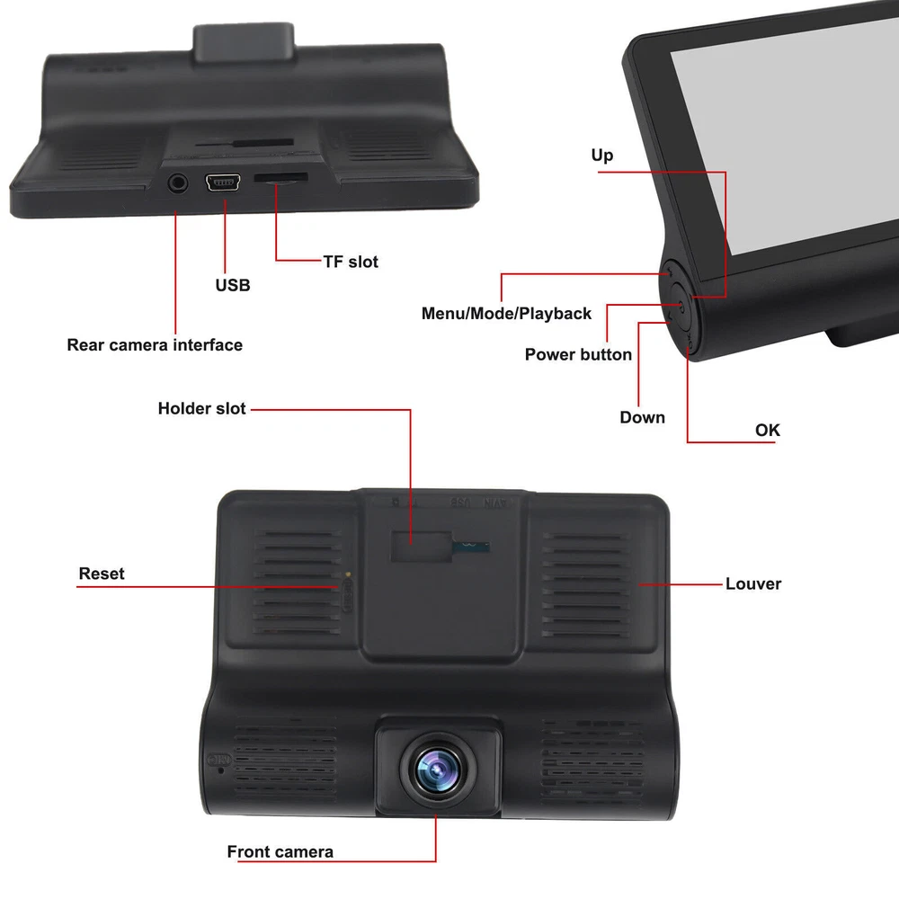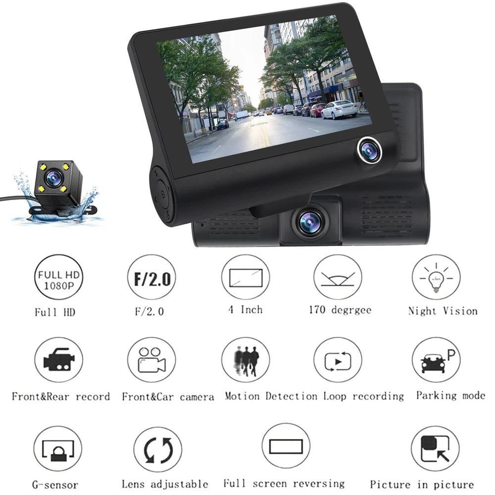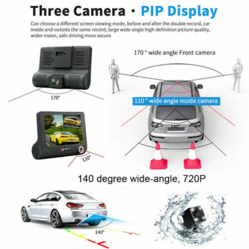 Welcome to NewBeeGoods feedback | contact us Location United States Hours Open 24/7 Support Feel free to Contact us Electronics Motors Supplies Home & Garden Pet Supplies Business & Industrial Newbeegoods USD 28.95 4" Touch Screen Dash Cam 1080P Dual Lens Car DVR Recorder Front and Rear Camera Car DVR 4" 3 Lens Dash Cam Front and Rear Video Recorder Camera G-sensor 1080P Description: Our Feature: Touch Screen !!!!!!!! We are the ONLY SELLER who has Touch Screen function on this DASH CAM! The dashcam can record high-definition video images and sounds of the whole process of car driving, and has night vision function. Objects in the dark can also be clearly displayed, and more details can be restored to fully protect driving safety. You can see it well through lights at night with the the function of enhanced night vision. 3 directions of recording are available (including the front camera, in-car camera and rear camera) and different screen viewing modes can be selected. Designed with new and large screen, more fashionable and convenient. A great product for your driving safety. Specification: Touch Screen: Support Front camera: 1080P In-car camera: 480P Rear camera: 720P Front wide Angle: 170 degrees Inside wide Angle: 120 degrees Rear wide Angle: 140 degrees Rear camera: Cable Length 6m /2.5mm interface Video resolution: 1920*1080 30fps interpolation/ 1280*720 30fps (front)/ 1280*720 30fps interpolation (rear) Video format: Advanced H.264 impact compression technology Video frame rate: 30fps Photo resolution: 1M/2M/5M/8M Photo format: JPG Microphone / speaker: Built-in speaker 1W Charging method: Car charger---5V/1.0A; USB interface Power input: USB plug car charger Battery capacity: Built-in polymer battery 300MA Track Offset/Advance Warning (ADAS): Support Dual lens: Support (Not ultra wide angle or 3D) WIFI: No Bluetooth: No Memory card: TF(SD) card (CLASS 10) Internal memory: None Large supported memory: 32GB Support function: TF card reading function, video recording, photo taking function, USB connection Motion detection: Support SOS / G-SENSOR: Support (DA380) Default light source frequency: 50Hz Feature: -The camera video recorder has 3 cameras to record, including the front camera, in-car camera and rear camera, making it more perfect and recording every moment of your driving. -170 degree wide angle record of the Front camera, 140 degree of the Rear cam and 120 degree of the inside one. -4 inch HD IPS display screen, adopting high-quality LCD screen display, making the image and video clearer and giving you a better visual experience. -The rear cam is waterproof and equipped with LED lights, it will automatically fill in the light in low light condition to ensure normal use in bad environment. The cable length of the rear cam is up to 6m. It can be mounted on the rear windshield or above the rear license plate. -Support Picture in Picture(PIP) Simultaneously Display. You can select two of the three cameras to record and display in the screen and they can record and display simultaneously (the front and the inside one /the front and the rear one), making the ride safe through every angle. -Automatically loop recording is available, no leakage of any second. Recorded video clips are stored on the TF card (Up to 32G Class10 TF card), when the TF card is full, the loop recording system will overwrite the oldest recorded image preferentially. -With adjustable angle design, get the screws to turn, the front cam can be adjusted up and down, bringing better monitoring effect. -Reversing Visual Function: When reversing, the rear cam will record, and the 4 inch high definition large screen will automatically display the rear viewing image. -Smart G-sensor: Built-in gravity sensor, it will automatically record video and lock file when the accident occurred, the locked images will be saved as a special file and the file will not be overwritten cycle, restore the accident site. -Intelligent Motion Detection: In standby mode, the machine goes into camera mode when the camera senses moving objects in the surrounding area, recording any motion and significant impact that occurs around your car when you leave. G-sensor Emergency Lock With the built-in G-sensor, when the car encountered a collision, the present evidence video will automatically record for 30 seconds. The video will be blocked, automatically save the video, and restore the scene of the accident, to prevent misuse, deletion, or overwrite, which ensures important footage is kept secure. Three Channel Monitor - Wider Angle 3 channel dash cam front and rear inside offers a 170° wide-angle front camera, a 120° in-car camera, and a 140° rear camera. Monitoring the front, rear, and interior of the vehicle, the dash cams can provide sufficient evidence for rear-end collisions and bumps. Loop Recording Loop recording automatically overwrites the oldest videos and saves current videos to avoid memory cards getting full. Recommend regularly deleting irrelevant records, saving important information, and extending memory card space. Easy Installation & Operation The front camera can be easily installed on the windshield. Then connect the car charger power cable to the camera and route the cable alongside the car interior trim panels. With simplified rear camera installation, no need to remove the reversing light, just connect it to the front lens and it can be used. The user manual will give detailed guidance. Rear Waterproof Camera The rear camera supports mounting on the rear window or above the number plate. The rear-mounted waterproof camera can be easily installed and hidden by wires. The rear camera is water resistant, so you don't have to worry about the rear camera mounted on the license plate being damaged by rain. Battery Life Our driving recorder provides a cigarette lighter, which can be directly connected to the power supply. Or you can install the hardwire kit (NOT included in the package) as a power cable to achieve 24-hour