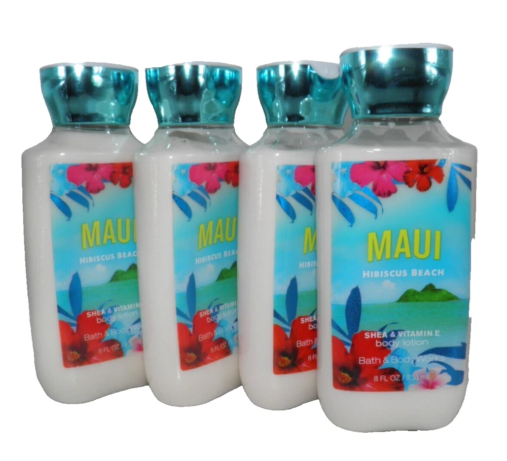 BATH & BODY WORKS MAUI HIBISCUS BEACH BODY LOTION 8 FL OZ (SET OF 4) NEW 4 x 8 oz bottles NEW Mailing Address - We cannot change the shipping address after purchase. This policy is in place for the protection of the buyer and seller. Before making a purchase, please ensure that your address is correct. We cannot change the address after purchase and will otherwise cancel the sale. Handling Time - Our handling time is set to THREE BUSINESS DAYS. We ship packages Monday - Friday, except on holidays . This listing is NOT sponsored by, affiliated with, or representative of the mentioned brand(s), trade name(s), or trademark(s) and does not claim any ownership of such. All trademarks or brands mentioned in this listing are registered trademarks of their original owners who reserve all their rights and ownership. The use or mention of any trade name, product name, or trademark is necessary for identification and is for reference purposes only