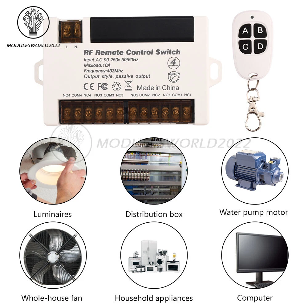 Store Categories Store Categories Other Product View Details Product features: 1. Four way remote control switch, crystal oscillator frequency locking, stable and non offset, no wiring, can pass through walls, easy to install; 2. WIFI intelligent control, low power consumption, working mode switching, receiver switching different functions through jump cap short circuit; 3. Realize one panel to control multiple lights, select a PC flame-retardant shell, and have a long service life; 4. Adopting imported chips and independent coding, multiple sets installed in one household do not cross code, and can be controlled through walls; 5. It is applicable to the lighting of the whole house to meet the needs of home, office and factory decoration. One button remote control enables you to switch on and off freely, making your home intelligent; 6. Directly add a receiver in front of the lamp or other electrical appliances, which can be controlled by pasting freely without the need for rewiring, making installation convenient. If multiple places need to be controlled, simply add random stickers. Product parameters: Style 1: Product Name: Wireless Remote Control Switch Receiver Power supply: DC5-30V Current: 10A Working frequency: 433MHZ Applicable lighting fixtures: LED pendant lamps, energy-saving lamps, etc Output method: passive signal/dry contact signal Style 2: Product Name: Wireless Remote Control Switch Receiver Power supply: AC90-250V (50/60HZ) Current: 10A Working frequency: 433MHZ Applicable lighting fixtures: LED pendant lamps, energy-saving lamps, etc Output method: passive signal/dry contact signal Remote control parameters: Name: Circular four button remote control Color: White Working frequency: 433MHZ Battery specification: CR2016 3V button battery, 2 pieces Remote control distance: approximately 50M (in open environments, the remote control distance varies depending on the environment) Size: 60 * 35 * 10mm Explanation: Multiple remote controls control the same receiver and can be controlled from different locations, If A opens and B closes, B opens and C closes A receiver can be equipped with up to 15 remote controls. Instructions for setting four different control methods: 1. Four way jog mode: Press the learn button once. 2. Four way self-locking mode: Press the learning button twice continuously. 3. Four way interlocking mode: Press the learning button three times continuously. 4. Switch between two jogs and two self-locking modes by continuously pressing the learn button four times. Clear Code&Check Code: Note: Two keys need to be learned to successfully learn Code checking: Press the learning button once, and the indicator light will light up. At this point, immediately press the first button on the remote control, and the indicator light will flash twice to indicate successful learning Clear code: Press the learn button 8 times continuously, and the indicator light flashes 8 times continuously, indicating successful code clearing Product List: 1X controller 1X remote control ( without Battery) Shipping Policy Payment Method Returns Policy Shipping Policy Payment Method Returns Policy Home Payment Shipping About us Contact us Copyright©2018 datacaciques Home Payment Shipping About us Contact us Store Categories Store Categories Other Product View Details Product features: 1. Four way remote control switch, crystal oscillator frequency locking, stable and non offset, no wiring, can pass through walls, easy to install; 2. WIFI intelligent control, low power consumption, working mode switching, receiver switching different functions through jump cap short circuit; 3. Realize one panel to control multiple lights, select a PC flame-retardant shell, and have a long service life; 4. Adopting imported chips and independent coding, multiple sets installed in one household do not cross code, and can be controlled through walls; 5. It is applicable to the lighting of the whole house to meet the needs of home, office and factory decoration. One button remote control enables you to switch on and off freely, making your home intelligent; 6. Directly add a receiver in front of the lamp or other electrical appliances, which can be controlled by pasting freely without the need for rewiring, making installation convenient. If multiple places need to be controlled, simply add random stickers. Product parameters: Style 1: Product Name: Wireless Remote Control Switch Receiver Power supply: DC5-30V Current: 10A Working frequency: 433MHZ Applicable lighting fixtures: LED pendant lamps, energy-saving lamps, etc Output method: passive signal/dry contact signal Style 2: Product Name: Wireless Remote Control Switch Receiver Power supply: AC90-250V (50/60HZ) Current: 10A Working frequency: 433MHZ Applicable lighting fixtures: LED pendant lamps, energy-saving lamps, etc Output method: passive signal/dry contact signal Remote control parameters: Name: Circular four button remote control Color: White Working frequency: 433MHZ Battery specification: CR2016 3V button battery, 2 pieces Remote control distance: approximately 50M (in open environments, the remote control distance varies depending on the environment) Size: 60 * 35 * 10mm Explanation: Multiple remote controls control the same receiver and can be controlled from different locations, If A opens and B closes, B opens and C closes A receiver can be equipped with up to 15 remote controls. Instructions for setting four different control methods: 1. Four way jog mode: Press the learn button once. 2. Four way self-locking mode: Press the learning button twice continuously. 3. Four way interlocking mode: Press the learning button three times continuously. 4. Switch between two jogs and two self-locking modes by continuously pressing the learn button four times. Clear Code&Check Code: Note: Two keys need to be learned to successfully learn Code checking: Press the learning button once, and the indicator light will light up. At this point, immediately press 