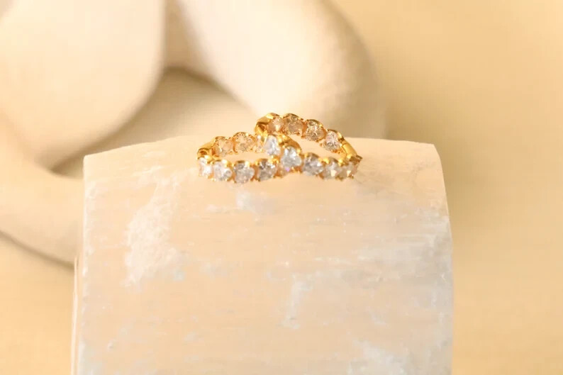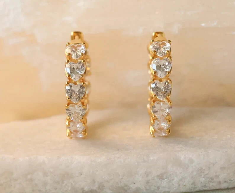 This 4 Ct Heart Simulated Diamond Women's Hoop & Huggie Earring is crafted in 14k Yellow Gold Over Sterling Silver. The earrings feature a heart-shaped simulated diamond with a 4mm width, set in a prong style. They have a clip-on closure and are 18mm in length, with a 10mm diameter. These personalized earrings are nickel-free, engraved, and handmade in India, making them suitable for various occasions like engagements, weddings, birthdays, and more. Perfect for adding a touch of elegance and sparkle to any outfit.