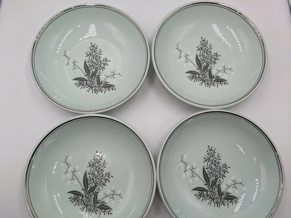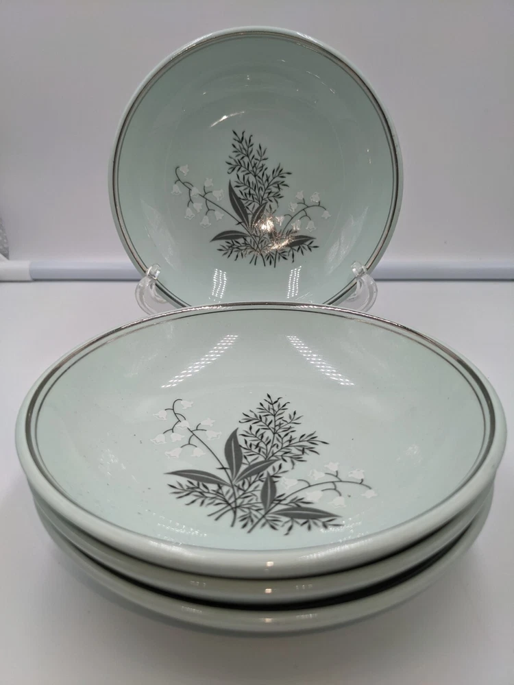 These bowls are a very pale blue-green color with a design of lily-of-the-valley and platinum trim. The bowls have a diameter of about 5.5 inches and are about 1.25 inches high. I am a careful and thorough packer, but for some of the items I sell, I’m not able to use combined shipping because of their size or propensity to break if put into a box with other items. If you purchase more than one item from my store and ask for combined shipping, I will do my best to accommodate your request. I will accept any reasonable offer so please feel free to send your offer. T hank you for visiting my store. I hope to see you again soon!