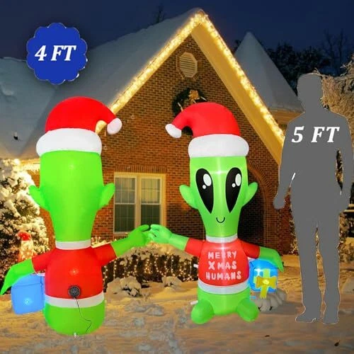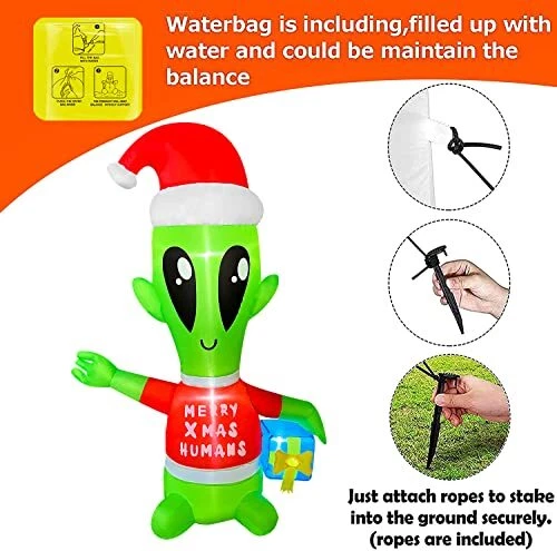 30 Days Return Policy Fast Delivery Trusted seller 4 FT Christmas Inflatables Alien with Gift Box Decorations LED Lighted Xmas Christmas Blow up Yard Decorations for Party Indoor Outdoor Garden Decor Product Description CHRISTMAS INFLATABLE: 4 FT Christmas Inflatable Alien with Gift Box is ideal Christmas blow-up yard decorations. The Christmas Inflatables will light up your yard and welcome your lovely neighbors BUILD-IN LED LIGHT: Christmas inflatables equipped with LED light, large and bright enough to illuminate the cheerful atmosp of Christmas Night! Easy to spot! This 4 FT Christmas Inflatable Alien with Gift Box would be an ideal host to welcome your Xmas guests STABLE DESIGN: The christmas blow up decorations are designed to be stable and inflatable during the holiday. The inflatable comes with ropes and stakes to ensure the stability of the inflatables. EASY SET-UP AND USE: Just plug this christmas inflatables decorations in, it has a built-in fan and in only seconds it will be fully inflated, then secure it to the ground AFTER SERVICE: If you're unsatisfied or have any problems with Xmas Blow Up Yard Decoration please contact the seller through . Shipping Returns Payment Shipping Shipping is FREE to all addresses other than APO/PO boxes in the lower 48 states. All our stock ships from US-based warehouses. Shipped via USPS or UPS (depending on location and package weight) Unless stated otherwise, all orders will ship within 24-72 hours of your payment being processed. Check our feedback to see the great reviews of FAST shipping we offer. Returns As our valued customer, we will do our best to make sure the product you receive arrives to you on time and as expected. If you are not satisfied with your purchase, please contact us within 30 days of receiving your order to process a return. Payment We currently accept payment via eBay managed payments only. Once payment is cleared, we will dispatch your shipment within 1-3 business days. Please refer to the "Shipping" tab for more information regarding shipping speed to your destination.