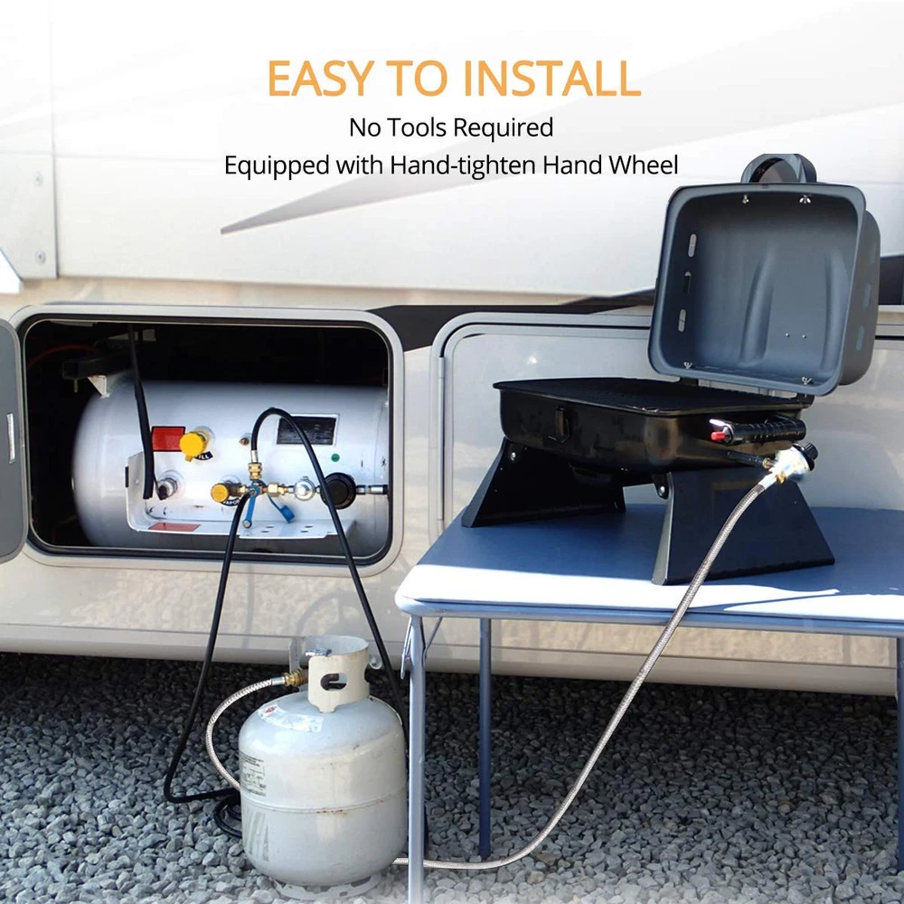 Connect 1 pound portable appliance to 20 pound propane tank - hose with adaptor fitting let you hook your 1Lb propane required propane appliance with 20 lb tank or lager by connecting this adaptor, allows connection to more fuel The male end can be used to connect a portable appliance that normally has a standard disposable propane tank connection High Pressure Hose uses highest quality rubber to ensure you safe leakage free operation while providing excellent weather resistance, Safe and made of quality material CSA Certified propane adapter hose has excess flow protection and will automatically shut off Multi-suitability - perfect for lantern, heater, camp stove, portable grill, tabletop grill, and more. Great for camping, tailgating, heating needs or having an outdoor cookout.
