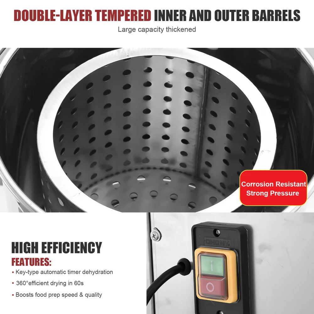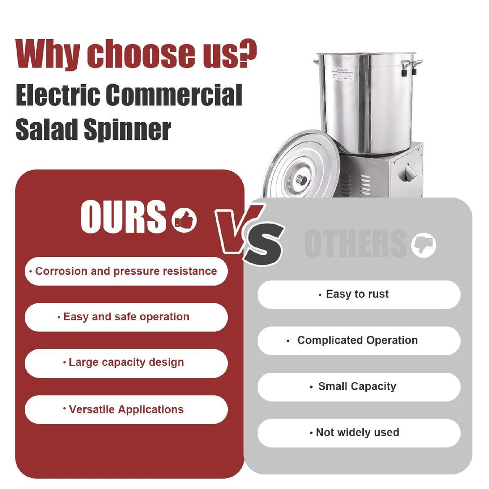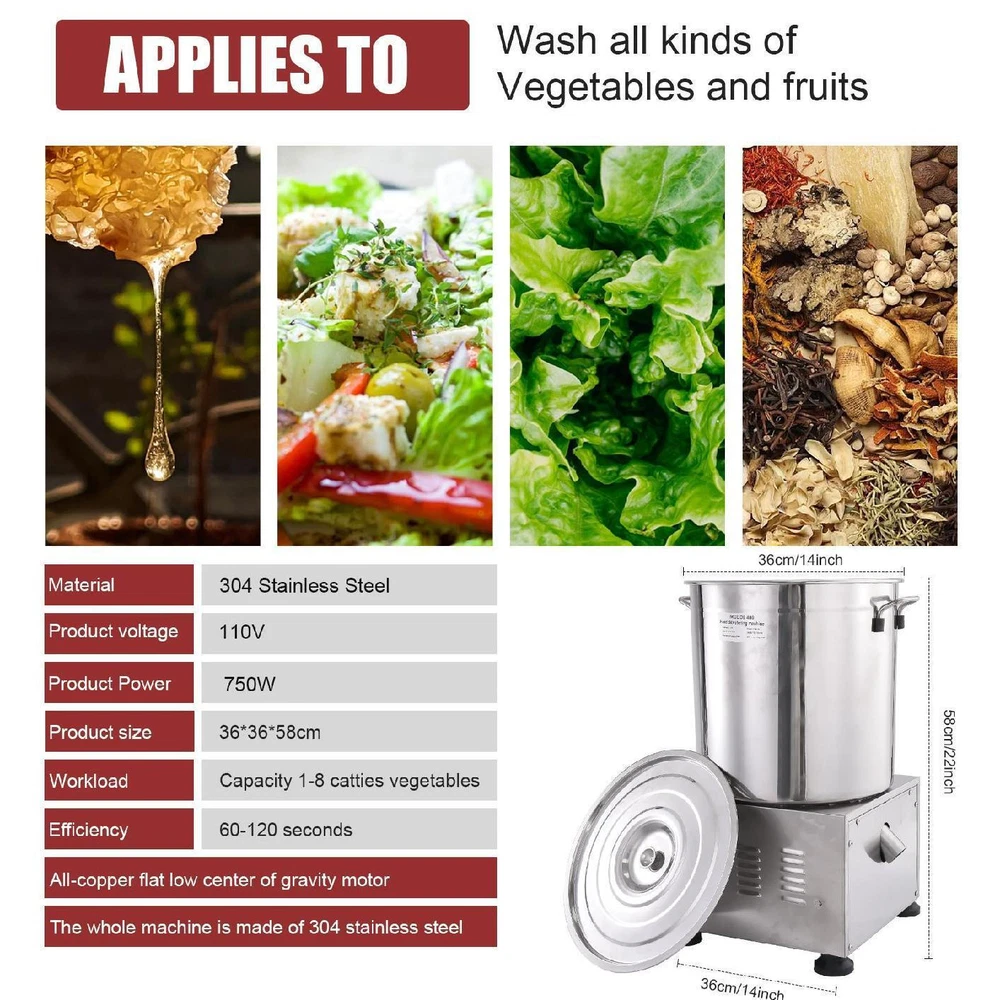 Store category Sign Up Now ! You may also like Product Description Bullet Points: Improved Efficiency: With a push button for automatic timing, this electric salad spinner provides 60s quick drying and 360 whole dehydration to improve your vegetable prep High Capacity: Achieve ideally dry greens without the need for anchoring or fixing. Our electric salad spinner's large capacity makes it ideal for commercial use Smoothly Rinse and Spin: The electric salad spinner features anti-friction bearings and a steel ring, making it highly resistant to high pressures. With the double thickened food-grade stainless steel and a strong copper wire motor, this spinner ensures efficient operating while preventing shaking Effortlessly Toss Salads: Thanks to its waterproof button and vegetable squeezing net, this electric salad spinner is simple and safe to use. Its effortless operating ensures that your salad greens are dried and ready to enjoy in no time Versatile Design: Perfect for canteens, hotels, and restaurants, handling vegetable stuffing, wine lees, oil, and honey, preserving traditional Chinese medicine Experience the comfort of fast dehydration without damaging vegetables with our electric salad spinner. Featuring a 60s quick drying time and strong copper wire motor, it's easy to operate and retains the juice of traditional Chinese medicine. Upgrade your salad-making experience with us. Specification: Name: Electric Salad Spinner Material: 304 stainless steel Model: 1-4 kg Voltage: 110V/220V Power: 750W Product size: about 35x38x59cm/13.78x14.96x23.23 inches Function: One-button dehydration, no need to fix Packing List: 1*large salad spinner 1*water outlet 1*filter bag 1*drum cover (including removable cover handle) 1*instruction manual 1*inverter (available for US 110V, not available for EU 220V) Notes: 1. Due to different lighting and screen settings, the item color may be slightly different from the picture. 2. Due to different manual measurements, please allow a 1-2cm difference in size. 3. Please read the instruction manual carefully before use to understand all operating procedures and safety guidelines. 4. Check the equipment regularly to ensure that all parts are in good condition to avoid malfunction in use. Payment Delivery details Terms of sales About us Feedback & DSRs Payment Before you palce an order, please kindly make sure that you have a paypal account. We accept PAYPAL payment only. Payment should be completed within 2 days after auction closed, or unpaid dispute will be filed for an closing auction. An unpaid case will be filled after 4 days. Delivery details We ship to your eBay address. Each package will be shipped to US by UPS Regular Parcel with tracking number. Please check your shipping address carefully before checkout, it can't be changed if order completed. All items will be shipped within 1-2 business day upon receipt of payment.Orders placed on weekend will be shipped within 3 days. If you do not receive your item in 7-10 business days.please contact us immediately for further assistance. We will be responsible for any damages or losses incurred in the shipping process. About us We maintain high standards of excellence FIVE STAR and strive for 100% customer satisfaction! Positive Feedback is very important to us. We hope that you contact us immediately Before you give us neutral or negative feedback, so that we can satisfactorily address your concerns. We promise to offer the lowest price and high quality produce. Our working time: From Monday to Friday(9:30 am to 18:00pm), we don't working on holidays ,hope you can understand and know that , thank you. Please always talk to us via ebay Message. We appreciate your business and look forward to growing our e-Bay sales with satisfied customers. Feedback Contact us If you have any questions, please feel free to contact with us by ebay Message during our business hours ( 9:30a.m. to 5:30 p.m.), or email us through eBay, we will try our best to help you to resolve it. For any presale or after-sale questions,please do feel free to email us! Due to the time difference, each email will be replied within 1 working day,and weekend will be delayed a bit. Feedback
