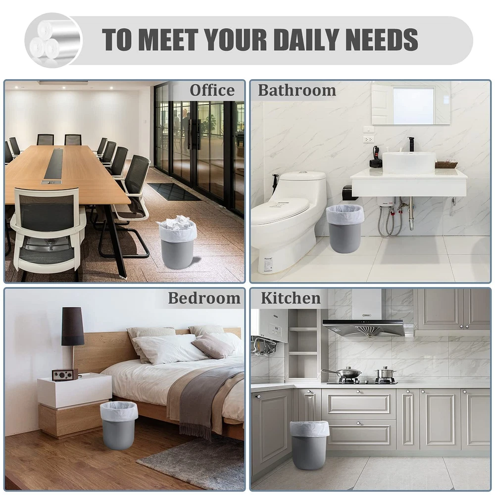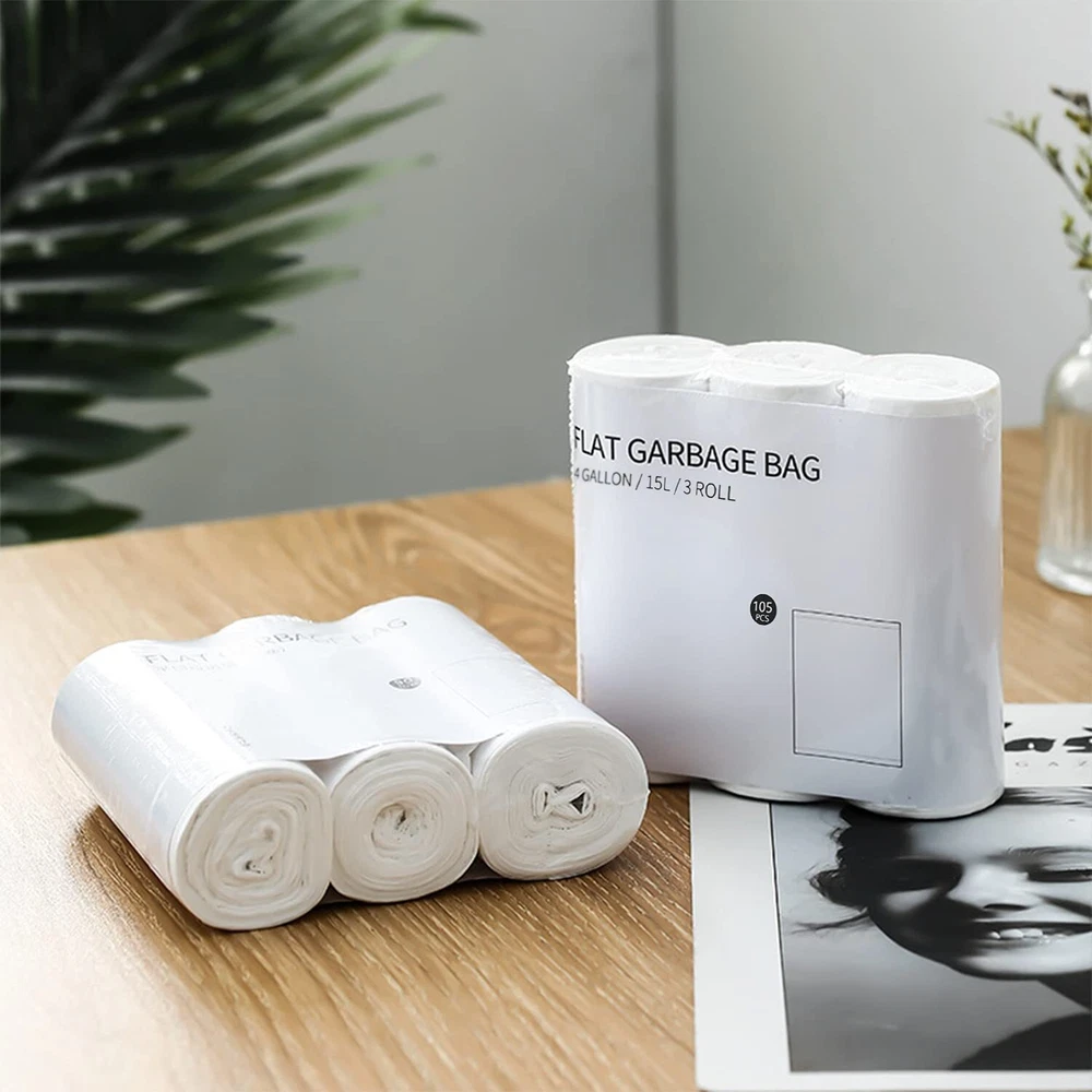 4 Gallon Trash Bag: These small trash bags fit up to 4 gallon size trash can, just the right size for daily use. The bag dimensions are 17.7” W x 19.7” H / 45 x 50cm, suitable for 15 liter trashcan 3 Rolls & 105 Count: The 4 gallon garbage bags will come in 3 rolls, 105 count in total. It is convenient to cover several rooms for easy access and enough amount to last for a great while Durable & Sturdy: Made of high density material, the 4 gallon trash bags are sturdy enough for daily household demands. Octagonal bottom design reliably prevents leakage Scent-Free & Semi-Clear: The 4 gal trash bags are unscented, suitable for smell-sensitive people. Semi-clear garbage bags help to identify the contents of garbage for waste sorting Multi-Use Fit: The 4 gal trash can liners are great for general household need. Suitable for office, bedroom, and bathroom. Ideal for the trash cans around the house or on-the-go messes