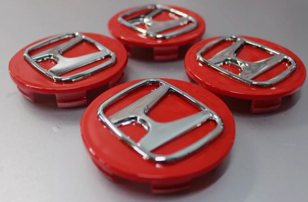 (4) Honda RED Wheel Rim Center Caps ACCORD CIVIC CRV 69MM/2.75 Sold as a set of 4. ACTUAL PICS OF THE CAPS ARE SHOWN. Please make sure this will fit your honda, Will fit many models Item Specs Material: Premium Quality Automotive ABS Finish Measurement: Direct OEM Fitment - 69mm / 2.75 Inches PLEASE UNDERSTAND THAT MANY DIFFERENT YEARS, TRIMS, AND MODELS MAY HAVE DIFFERENT SIZE OEM WHEELS WHICH MAY REQUIRE A DIFFERENT SIZE CENTER CAP. PLEASE ENSURE THIS IS THE CORRECT SIZE BEFORE PURCHASING. THANKS. Recommended Vehicles Accord (2003-2015) Civic (1999-2015) CRV (2005-2014) Pilot (2003-2015) Element (2003-2011) CRZ (2011-2016) Ridgeline (2006-2014) Please confirm by part number whether or not it will fit your vehicle. Part Numbers: 44732SA9AA00 44732-S9A-A006-1 44732-S0X-A000 44732-S9A-A00 44732-S0X-A01 44732-S7S-J01
