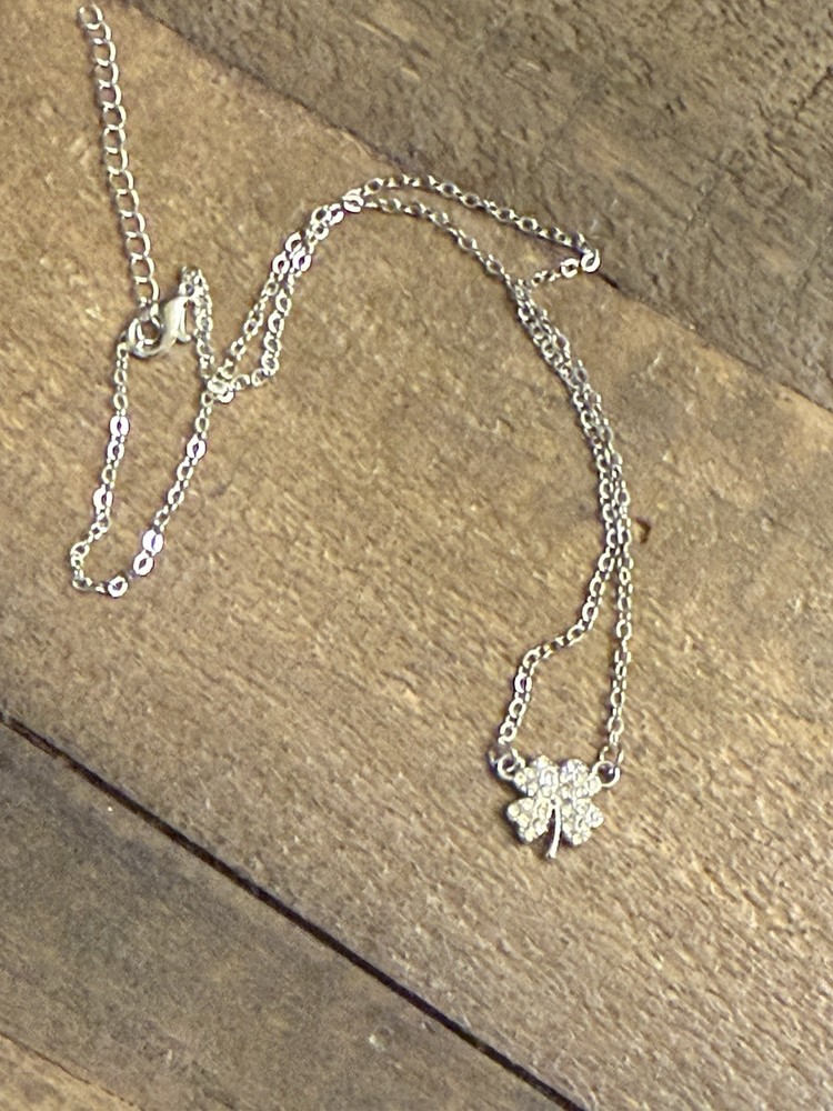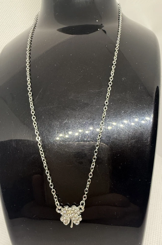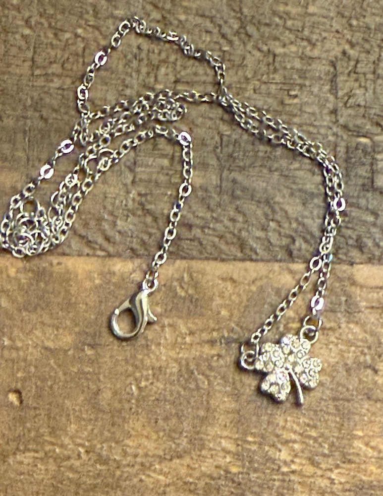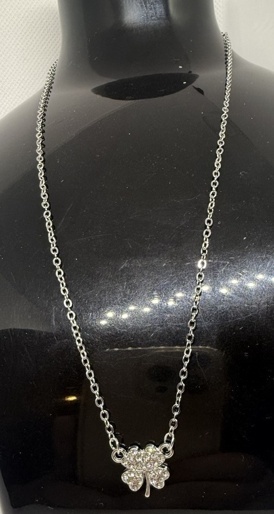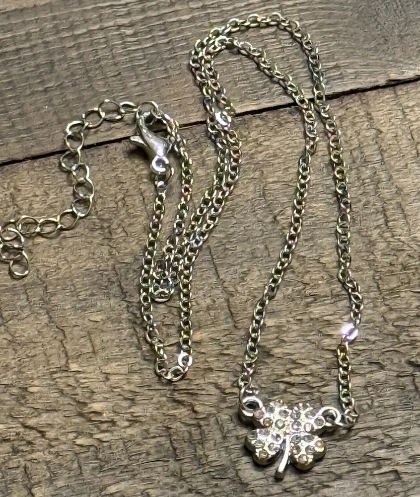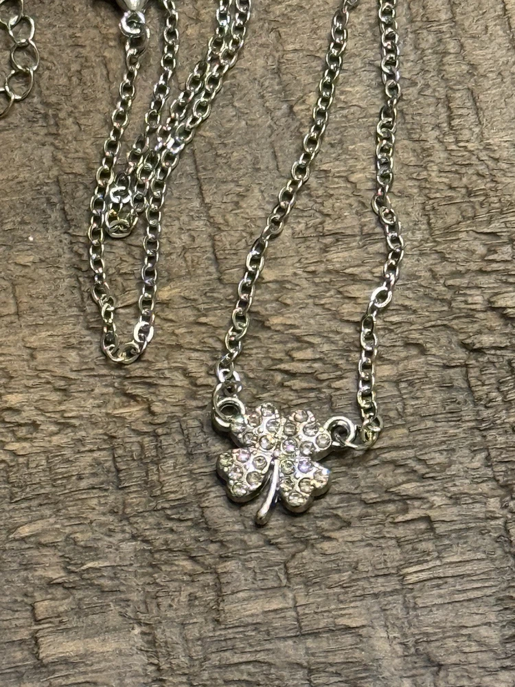 Silver plated stainless steel 4 leaf clover diamond (cz) necklace. 18.5” long in total, 16.5 plus a 2” extender. Makes a beautiful gift especially with St. Patricks Day right around the corner! Comes packaged ready to gift. #luck #4leafclover #clover #necklace #St.PattiesDay