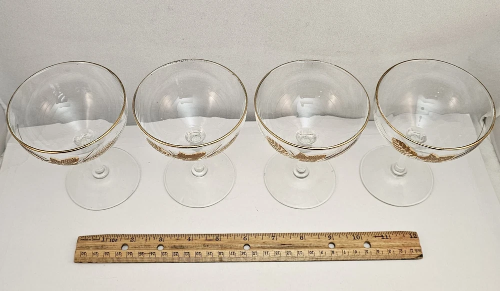 4 ~ Libbey Gold Leaves Cordial Cocktail Sherbet Glasses Vintage 1960's. Condition is Pre-owned and in very good condition. Please see all photos for item details. Shipping USPS.