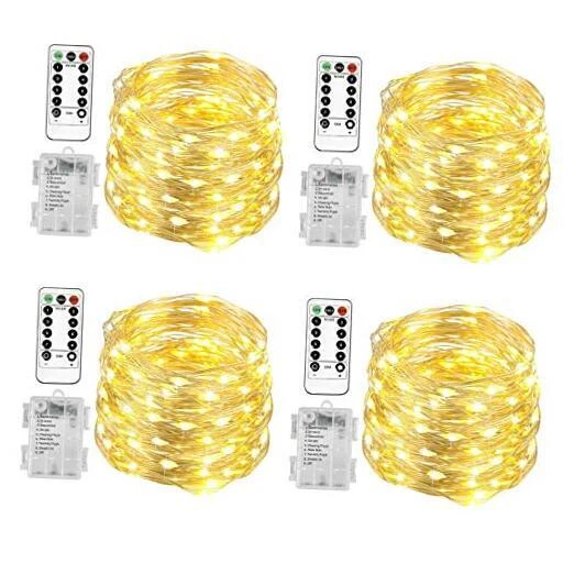 Return Policy Fast Delivery Trusted seller 4 Pack 20 Ft 60 LED Fairy Lights Battery Operated Christmas Lights with Remote Waterproof 8 Modes Firefly Twinkle String Lights for Party Bedroom Wedding Halloween Decorations Product Description Remote Control: 13 keys remote control with 1 button on battery pack for adjusting brightness and light modes Timer Function: Automatically turns on for 6 hours and off for 18 hours every 24 hours Battery Power: Transparent battery box with hook for easy hiding in decorations Easy to Shape: Soft wire can be bent and molded into various shapes for DIY decoration Low Voltage & Waterproof: 5v LED lights are energy efficient and waterproof for indoor/outdoor use Warning: Keep out of reach of children and prevent tangling when close to lights Shipping Returns Payment Shipping Shipping is FREE to all addresses other than APO/PO boxes in the lower 48 states. All our stock ships from US-based warehouses. Shipped via USPS or UPS (depending on location and package weight) Unless stated otherwise, all orders will ship within 24-72 hours of your payment being processed. Check our feedback to see the great reviews of FAST shipping we offer. Returns Seller does not accept returns Payment We currently accept payment via eBay managed payments only. Once payment is cleared, we will dispatch your shipment within 1-3 business days. Please refer to the "Shipping" tab for more information regarding shipping speed to your destination.