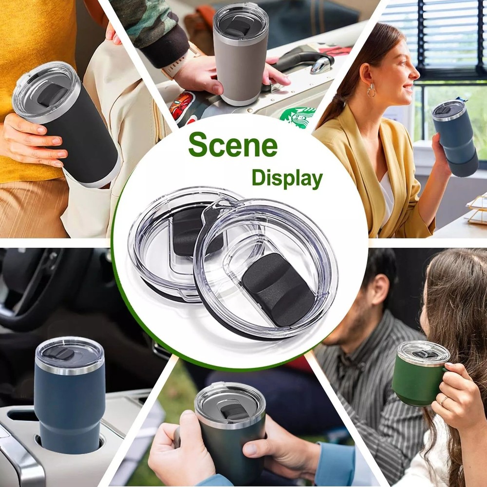 About this item Wide Compatibility-The tumbler lid 20 oz replacement with 3.15in inner dameter and 3.38in outside diameter is compatible with YETI Rambler, Ozark Trail, Coffee Tumbler and most other glass. Safe Materials-20 oz replacement lid for YETI lids is made of thick solid clear material which is BPA-free and shatter resistant. Stronger Magnetic Force-Each spill proof tumbler cover comes with magnetic sliders replacement for YETI. Don't worry about losing the slider and do not worry about spilling fluids when you are driving or traveling. Good Sealing-The magnetic slider and black silicone O-rings fit your cup snugly to prevent liquid spill and keep your drinks warm/cold for a long time. Easy to Clean-The black magnetic closure removes easily then rinse the lid under running water. Also dishwasher Safe.