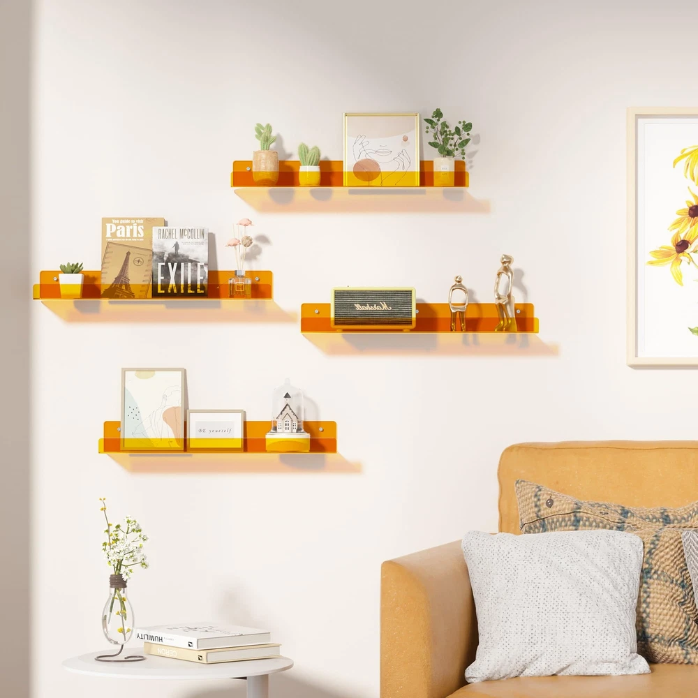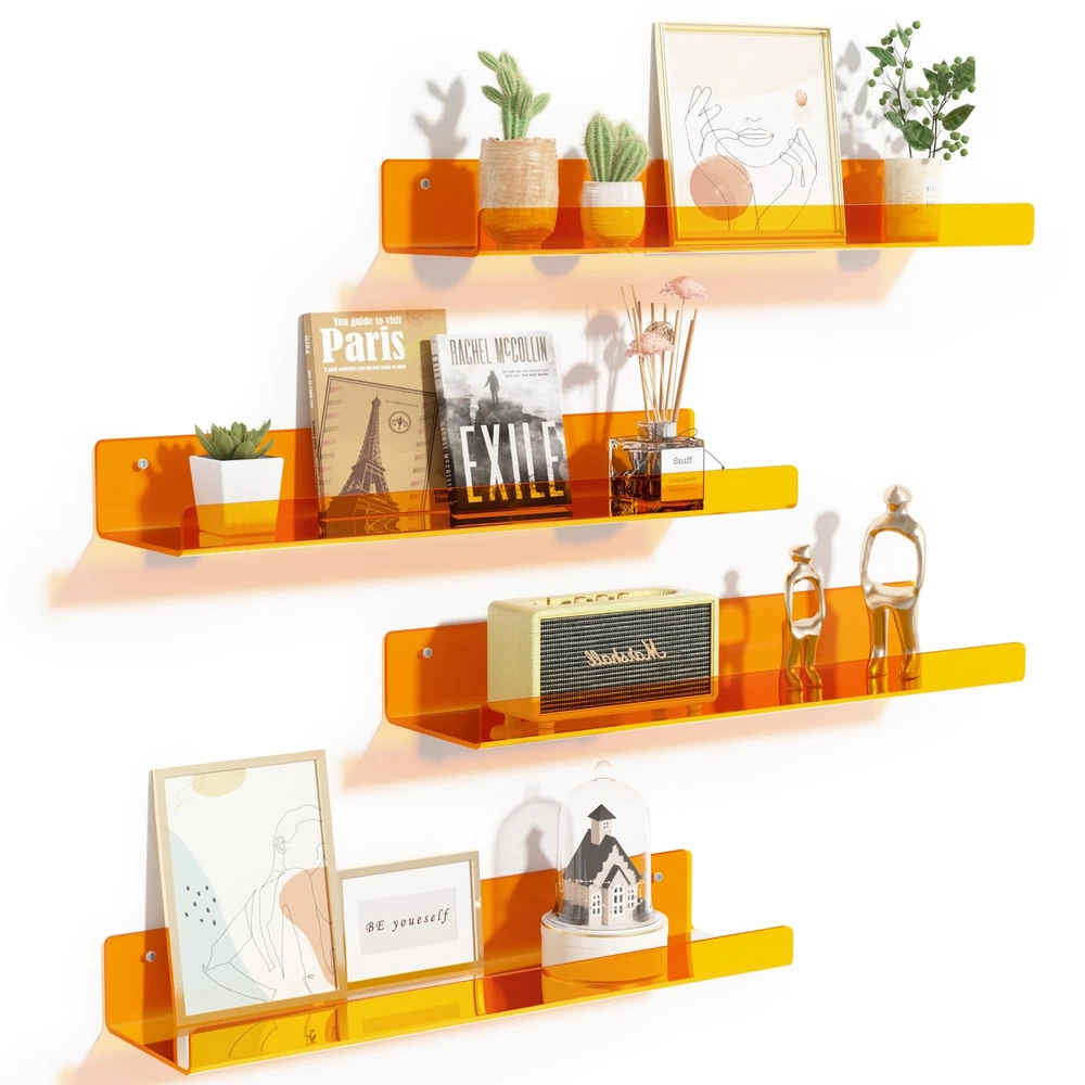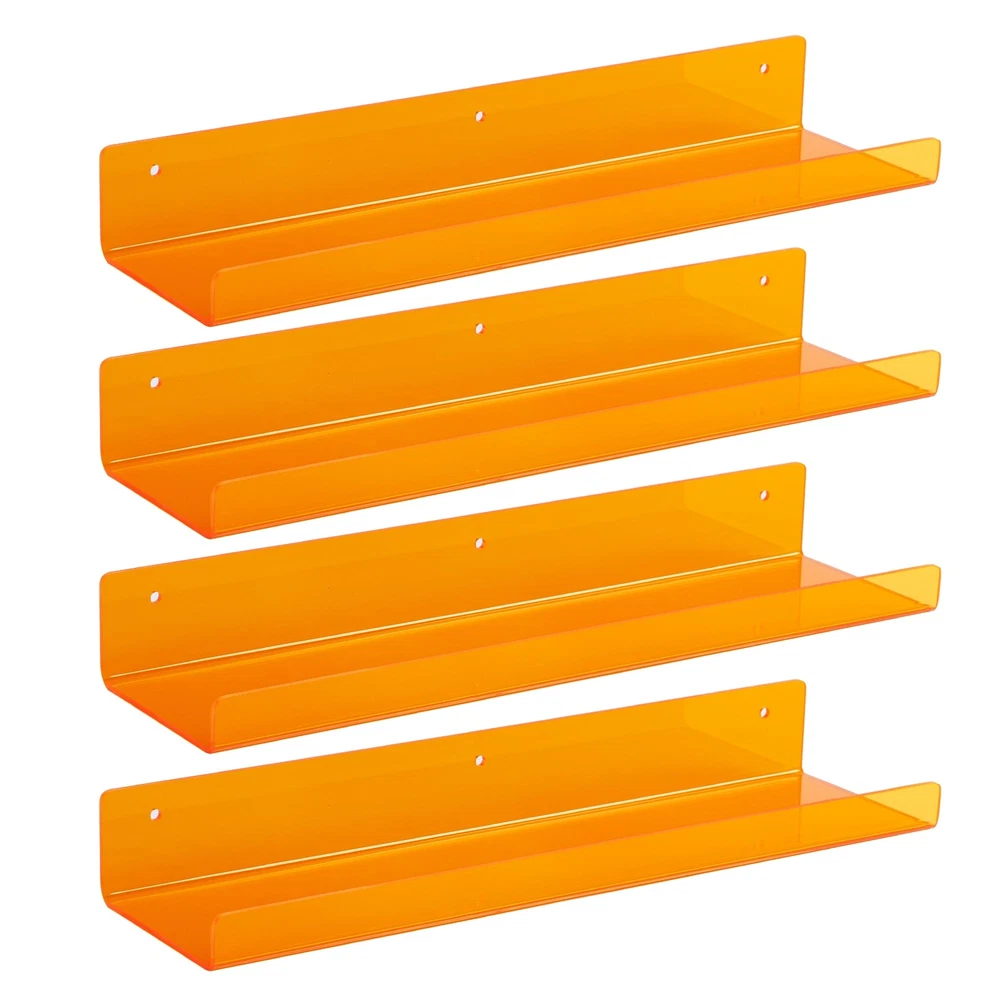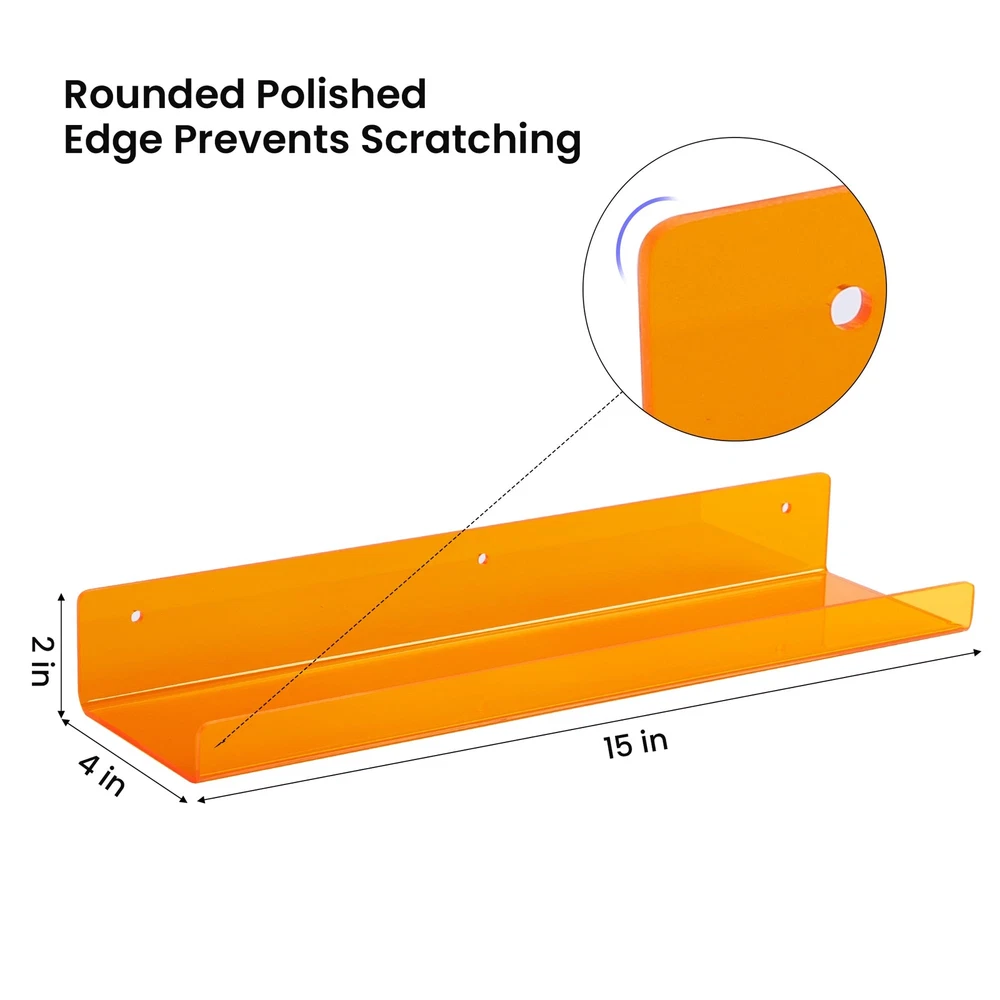4 Pack Acrylic Shelves for Wall Storage, 15" Floating Bookshelves for , Displ...