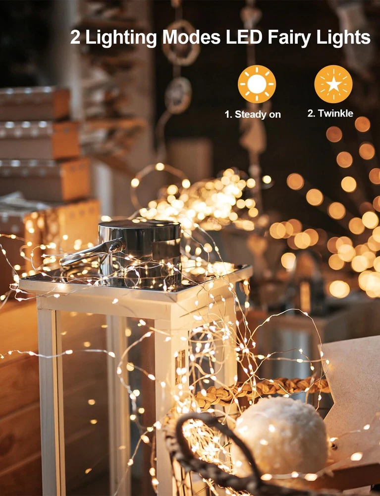 Value Pack: This pack includes 4 sets of 16.4ft fairy string lights, giving you plenty of length to decorate larger spaces or multiple areas. Plus, the value pack means you can save money while still getting high-quality, beautiful fairy lights. Long-Lasting LED Lights: The 50 LED lights are designed to last longer than traditional bulbs, so you can enjoy your twinkling lights for longer without having to replace them. Lead wire: 0.5m/1.64ft, enough to hide the battery compartment. Convenient Battery Operation: No need to worry about finding a nearby outlet or tripping over cords. These twinkle lights are 3xAA battery-operated (Not included), allowing you to place them anywhere without the hassle of cords or wires. Durable and Flexible Wire: The silver copper wire is both durable and flexible, making it easy to bend and shape to fit your decorating needs. Plus, it's thin enough to be discreet and blend in seamlessly with your decor. Versatile Decoration: Add a pop of color and sparkle to any space with these warm white/cool white/multicolor fairy lights. Perfect for indoor and outdoor use, they're great for decorating bedrooms, dorms, weddings, parties, and yard