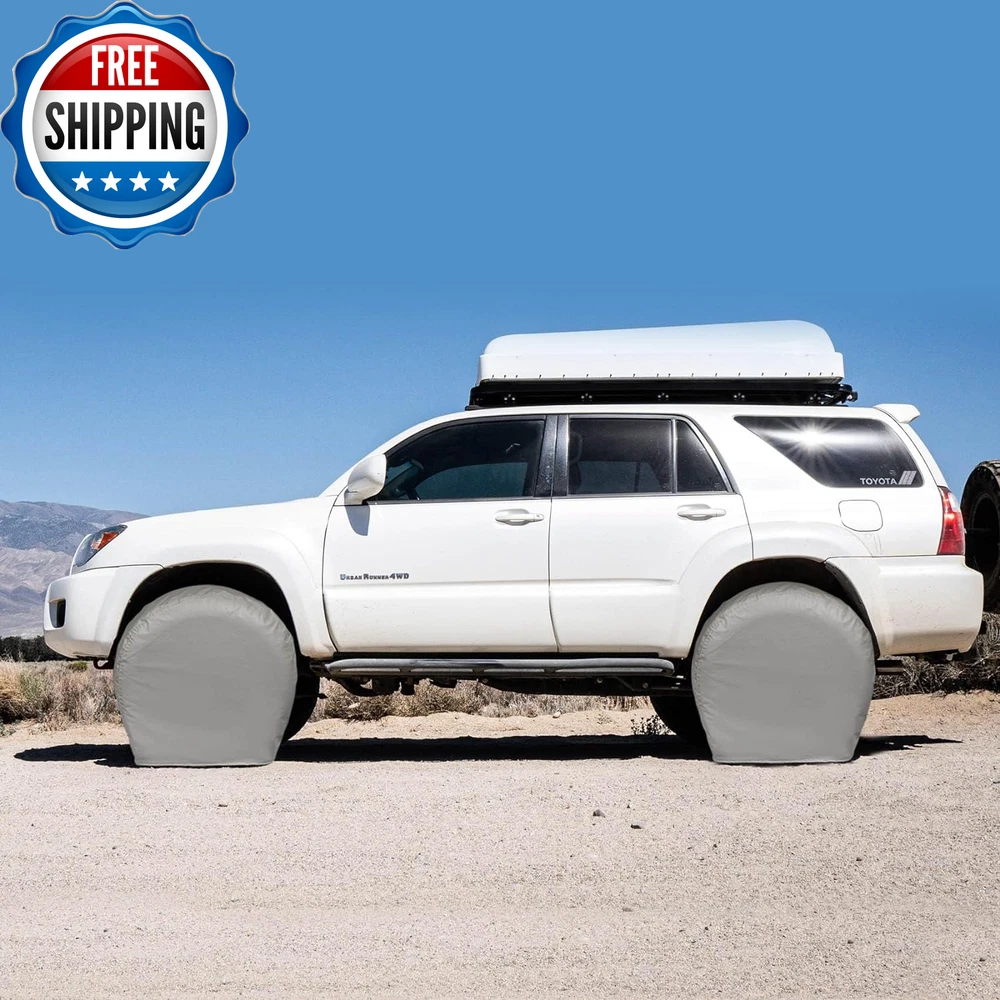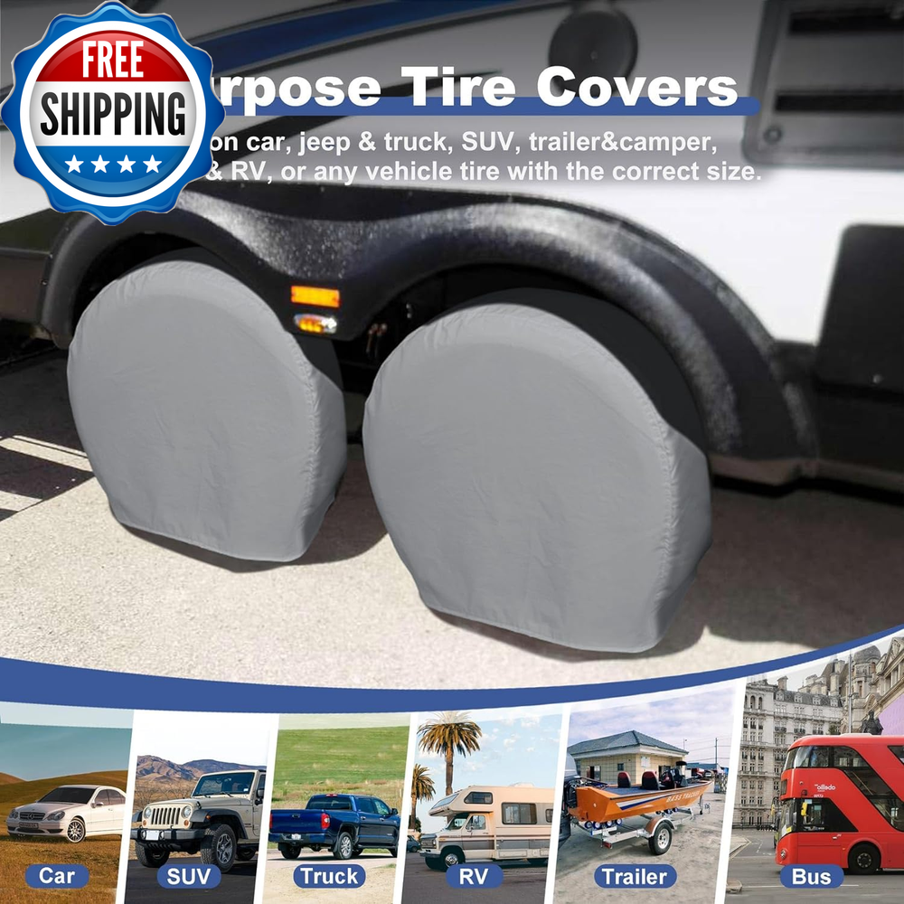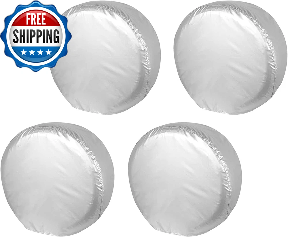 These tire covers are a game-changer! The heavy-duty vinyl feels super durable, and the water-resistant coating plus UV protection keeps my tires safe from sun and weather damage. The soft backing prevents scratches, and the universal fit is spot-on—no slipping or gaps. Installation was a breeze, and they look sleek in charcoal. Great value for a set of four! If you need reliable tire protection, these won’t disappoint.