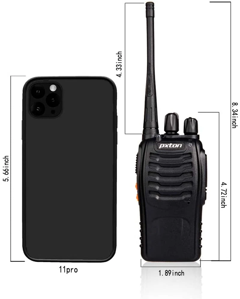 4 Pack Set Long Range Walkie Talkie 50 Mile Two Way Radio Charge Waterproof 【Diversified functions】FCC ID: 2AX68PX-888S, 16 preset channels can be selected by rotating the knob on the 2 Way Radios to select any channel within the frequency range; you can program 50 CTCSS audio and 105 CDCSS audio on each programmed channel, The Two-Way Radios has the functions of VOX voice control, scanning, low battery alarm and night flashlight,etc;package contains (walkie talkie, battery pack, Charger, belt clip, hand strap, Earpieces) X 4 and user manual. 【Long-Range communication】walkie talkies long range can reach 3 miles in open areas such as rural areas, suburbs or seaside, etc. where there is no shelter. If in cities or towns, walkie talkies can reach 0.6-1.2 miles in most cases. The actual distance Depends on the obstruction of the current environment. 【Durable battery】Under normal circumstances,walkie talkie can be used for 8-96 hours with a full charge, and up to 8-12 hours with continuous use. The actual time depends on the frequency of use;3-4 hours to fully charge a battery with 0 capacity,long battery life. 【Lightweight and compact, suitable for multiple scenes】Small size and light weight, Hard and durable shell, drop-proof, Rainproof, this Handheld two way radio transmitters are suitable for hotel management, villas, restaurant kitchens,outings,Outdoor mountain climbing, construction sites, factory warehouses, car driving, cruise ships, school,churches, retail stores and supermarkets, security personnel, construction personnel, safety maintenance personnel. 【After-sales service】pxton walkie talkies, provide return and money back service within 30 days and lifetime customer service. If you have any problems, please tell us through the platform,our professional team will solve your after-sales problems as soon as possible.