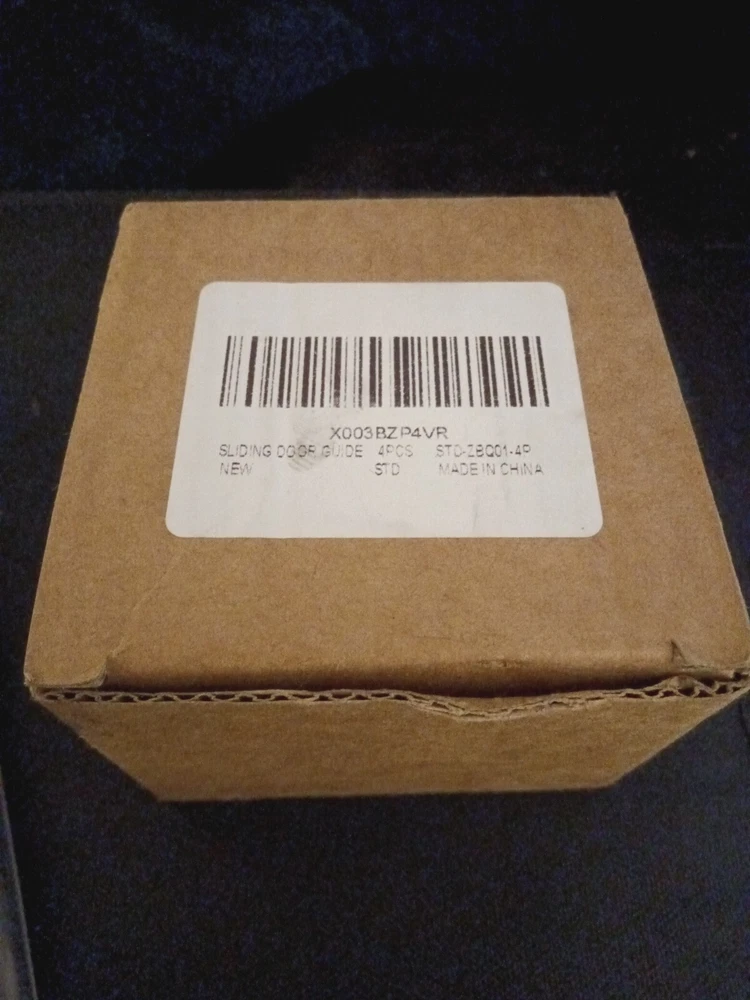 The product is a 4-pack of Saillong sliding closet door floor guides, suitable for sliding doors. The package dimensions are 4.29 x 2.76 x 1.5 inches, and it weighs 0.26 pounds. These universal sliding door bottom hardware pieces help guide sliding closet doors smoothly and securely.
