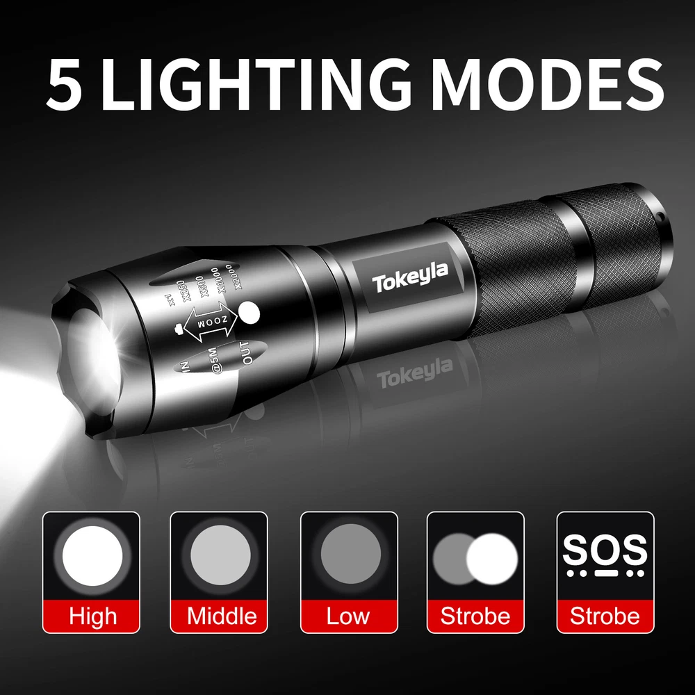 4 Pack Small Super Bright LED Flashlight Zoomable Portable Mini Torch 5 Modes ‼️‼️【Note】 Batteries not included, please feel free to contact us if any need. Features: 1. [SUPER BRIGHT WITH 5 MODES] : The super bright flashlight LED uses advanced LED beads, emits bright light up to 2000 lumens and reaches nearly 656ft, it can easily light up an entire room! Adjustable/zoomable focus with 5 modes: High- Medium- Low- Strobe- SOS (for Emergency). 2. [WATERPROOF]: The small LED flashlight can be used in any weather. The aluminum alloy body has no rust issue. The flashlight high lumens super bright waterproof can be daily used, like troubleshooting, biking, hiking, camping, walking dog, or for emergency, survival, etc... 3. [ADJUSTABLE FOCUS]: Our handheld flashlights tactical torch utilize the latest durable LED chip, provides super bright light beam. Easy-controlled head-pulling zoom and easy mode-switch by light taps of button. Adjustable focus for use in different situations it ideal for use around the house 4. [PREMIUM QUALITY & LONG-LASTING]: Our flashlight super bright is made of high quality aluminum alloy, this super bright LED Flashlight is solid and sturdy, the edge designed is sharp and strong, can easily break the windows in case there's a car accident. Specification: Type of flashlight: Super Bright LED Flashlight Small LED Type: LED Output Power (max): 10W Power by: 1x 3.7v Li-ion Rechargeable Battery (Not included) Size: 4.80 x 1.06 x0.95 inches Material: Aluminum Weight: 2.5 ounce Function: Zoomable Light Mode: High/Medium/Low/Strobe/SOS Warm Tips: 1. Before use, please remove the the plastic packaging film of the battery. 2. Please take out the battery if you won't use for a long time to avoid battery leakage. 3. Please do not submerged handheld super bright zoomable LED flashlight underwater as it doesn't 100% waterproof. 4. Please select a lower setting when the LED flashlight super bright torch zoomable is hot as it is typical for high powered led flashlight and will not cause damage to the handheld flashlight. 5. Don't directly illuminate the eyes. Note:Please find us in first time when you find the parcel Broken/Scratch/Function Error/Miss Parts/Unwork/has not arrived etc, we always have more details and solutions, even duty for your order. Package includes: 4x Super Bright LED Flashlight Small (not included battery) On Dec 12, 2024 at 05:46:39 PST, seller added the following information: