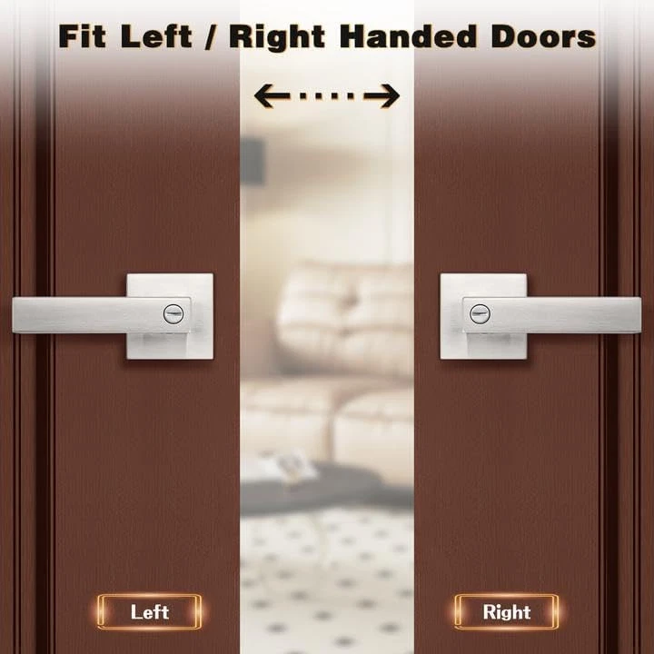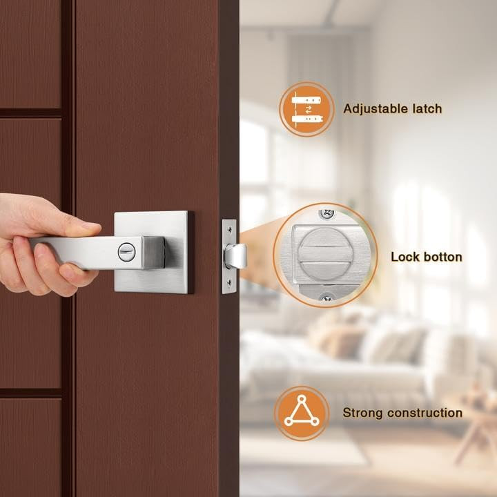 【Improve Your Home】: These square door lock meant to create an elegant effect to give your home the perfect finishing touch. Upgrade handle with provides a comfortable grip but a decorations to be used to enhance the beauty of your home. In contrast to other metal door handles, these handles provide a comfortable touch, which more suitable for colder or wetter conditions 【Upgrade Version】: Compared with other door locks, this privacy door handle help you to open and close your doors with less effort and freed your hands for other tasks. Upgraded internal structure not only strengthens the stability, but also prolongs the service life of the door handles 【Keyless Privacy Feature】: Privacy door Lever without keys could be locked and opened by a thumb-turn button from inside and a coin or slotted screwdriver could be a emergency tool to open and lock it from outside. This privacy door lever is best used for the room of privacy function needs, like bedroom, bathroom, guest room or office meeting room, where the easy locking & opening needs from inside is needed 【Easy to Install】: This interior privacy door Knobs come with all accessories to help you complete installation and upgrade existing interior in less time with only a screwdriver and no need for professional door fitters. It fits both right and left handed doors, which help you to make a simple installation without reversible the hand levers 【Adjustable Latch】: This privacy door locks comes with an adjustable latch 2-3/8" or 2-3/4"(60mm or 70mm) to fit all standard doors from 1-3/8" to 1-3/4" (35mm-45mm) thick. Lever Length: 4.88" (124mm), Rosette Diameter: 2.56" (65mm). The latch plate is square, and can't be removable