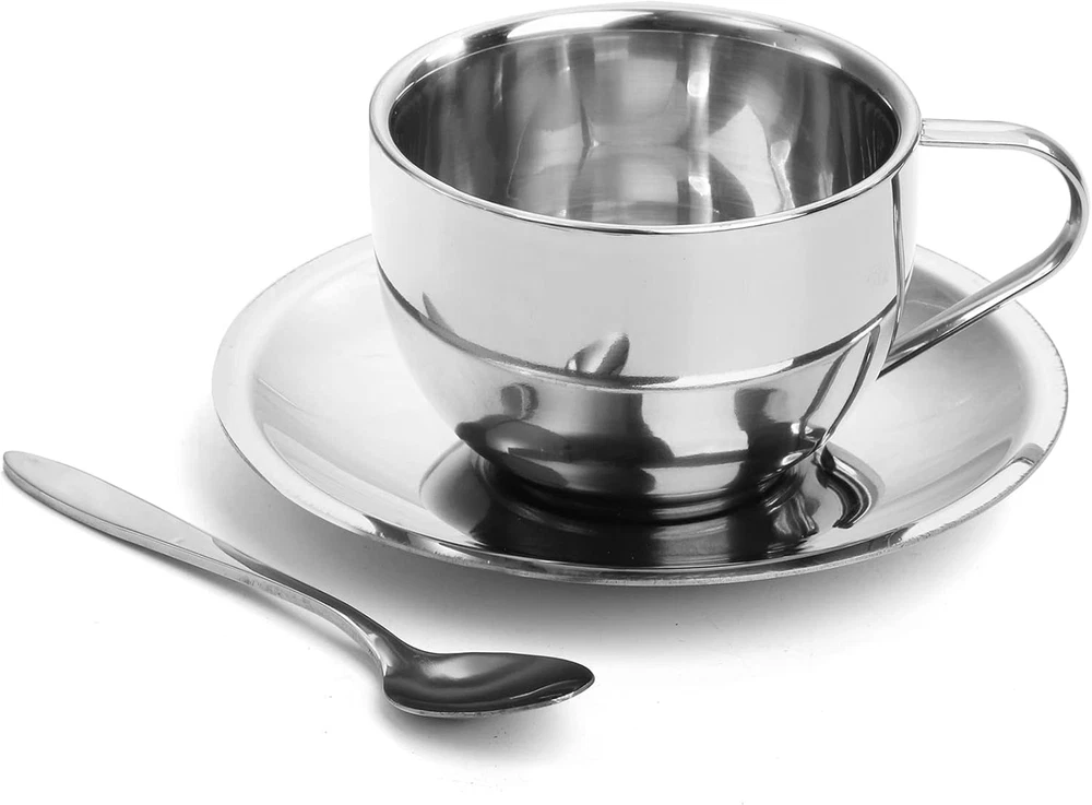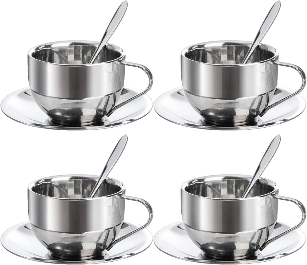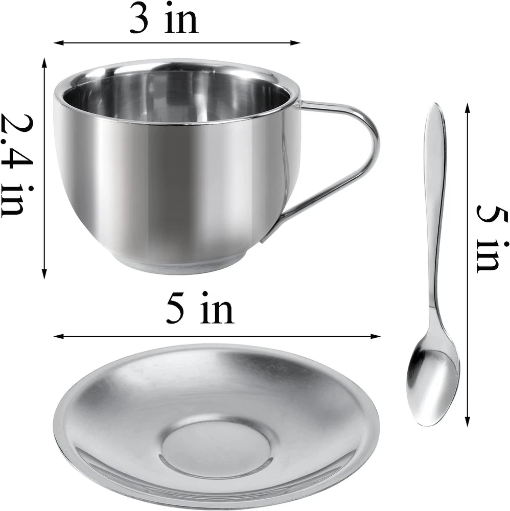 Store New Arrivals Add to Favorite View Feedback Contact 4 Pack Stainless Steel Coffee Cup Set, 6 Oz Coffee Mugs with Spoon and Saucer, Double Walled Espresso Cups Mugs for Coffee, Latte,Tea, Milk Description Item model number O-StainlessSteelCoffeeCups-4P Style Modern Number of Items 4 Pattern Solid Occasion Various Occasions Item Weight 170.1 Grams Theme Food Unit Count 4.0 Count Product Dimensions 5"W x 2.4"H Material Stainless Steel Capacity 6 ounces Package Type FFP Age Range (Description) Adult Specific Uses For Product Hot Drinks Included Components Lid, Handle Reusability Reusable Item Weight 6 ounces Material Feature Insulated Special Feature Double Walled Shape Cylindrical Recommended Uses For Product Travel, Home Material Type Free Lead Free, BPA Free Product Care Instructions Machine Wash, Hand Wash Only Okllen set of 4 coffee cup set come with spoon and saucer. The 6 Oz coffee cup measures 3.2"D x 2.4"H, the saucer 5"L, and spoon 5"L. A decent size coffee mugs set. 18/8 Stainless Steel Material: Okllen espresso cup and saucer set is made of non-rusting 18/8 stainless steel, food grade, strong and lightweight. Safe to enjoy your drinks and Dishwasher Safe. Insulated Coffee Cups: Uniquely constructed in double wall design, our stainless steel coffee mug set provides a barrier to heat transfer that helps prevent your hands from burning. Versatile Cup Set: The stainless steel coffee cup set is ideal for serving latte,espresso, cappuccino, coffee, hot cocoa, tea, milk etc. Also can be used as a great gift for coffee & tea lovers. Various Occasions: The elegant coffee cup sets are suitable for cafe, bar, restaurant, office, home, kitchen, dining. Portable design is also ideal for outdoor picnic and camping. Product Description Okllen 4 Pack Stainless Steel Coffee Cup Set, 6 Oz Coffee Mugs with Spoon and Saucer, Double Walled Espresso Cups Insulated Mugs Wide Application: The elegant coffee cup sets are suitable for cafe, bar, restaurant, office, home, kitchen, dining. Portable design is also ideal for outdoor picnic and camping. Exquisite Gift: This stainless steel coffee mug with fine craftsmanship and stylish outlook can be used as a great gift for coffee & tea lovers, family and friends. A variety of occasions like Birthday, Valentines Day Gift, Wedding, Housewarming, Mother's Day and Graduations, etc. 4 Pack 6 oz Coffee Cups Set Dimension: mug measures 3.2"D x 2.4"H, the saucer 5"L in Diameter, and spoon 5"L in length Capacity: 6 oz High Quality 18/8 Stainless Steel Made of non-rusting 18/8 stainless steel, food grade, strong and lightweight. Safe to enjoy your drinks and Dishwasher Safe. Insulated Coffee Cups Uniquely constructed in double wall design, our stainless steel coffee mug set provides a barrier to heat transfer that helps prevent your hands from burning. Versatile Cup Set: The stainless steel coffee cup set is ideal for serving latte,espresso, cappuccino, coffee, hot cocoa, tea, milk etc. ABOUT US We offer the best prices around on high quality products. Our E-store includes media such as books, movies, music and games while offering electronics, toys, sporting apparel, clothing, tools, general home, garden items and more. SHIPPING We are always working hard to ensure your package arrives as soon as possible. Please understand that some factors like weather, high postal traffic, and the performance of shipping companies are outside of our control. We offer free shipping to the lower 48 states and ship within 2 business days of payment, usually sooner. We do not accept P.O. Boxes. Please provide a physical address. For shipping outside of the continental USA, we only use eBay's Global Shipping Program.The item is shipped to KY and then sent to the rest of the world. International customers are responsible for all duties and taxes. Continue to check out in order to calculate costs for shipping the item to your country. Messages regarding eBay's Global Shipping Program MUST be directed at eBay EXCLUSIVELY. RETURNS We offer a 30-Day Return Policy on items which you are not completely satisfied with. You have the option for a full-refund or an exchange of the item. No returns are available on items shipped outside of the USA. PAYMENT We accept PayPal. CONTACT US This page content is yet to come Please ad us to your favorite seller and visit again later Thank You CUSTOMER SATISFACTION We try our very best to make sure every customer is completely satisfied. If there's a problem, message us! We're happy to help. WE ACCEPT Copyright © 2021 AutoDS. | All Rights Reserved