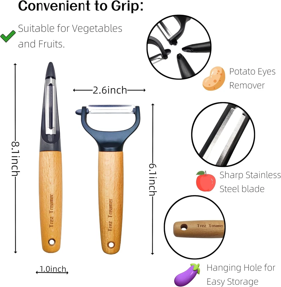 Store New Arrivals Add to Favorite View Feedback Contact 4 Pack Vegetable Peelers for Kitchen, Y Wooden Potato Peeler Set for Apple Cucumber Carrot Fruit Potatoes Veggie Peeler Bulk with Stainless Steel Blade,Dishwasher Safe Description Item model number GPD-mu Style Fine Product Dimensions 7.87"L x 0.94"W Power Source Manual Blade Edge Straight Color 4-Pack Wooden Peelers Material Stainless Steel Country of Origin China Handle Material Wood Item Weight 8.4 ounces Operation Mode Manual Model Name Potato Peelers Recommended Uses For Product Fruit, Vegetable Blade Material High Carbon Stainless Steel Number of Blades 1 Special Feature Ergonomic Specific Uses For Product Fruit, Vegetable đ„ăEffortless Peelingă: This peeler was tested for scraping fruits and vegetables of varying hardness and softness, and was able to peeling the skin effortlessly, even when dealing with harder vegetables such as pumpkin.With built-in potato eye remover, it is a high quality kitchen potato peeler. đăNon-Slip & Secure Connectionă: The raw, oversized oak handle securely links to the peeler's top end, ensuring a firm grip. Even when wet, the tight connection prevents slipping. Convenient for hanging, easy to clean. The vegetable peeler handle is large and easy to grip, efficient and lightweight, comfortable to use for both right and left hand operation, even for people with arthritis. đ„ăVersatile Applicationă: This vegetable and fruit peeler is suitable for peeling a variety of skinned vegetables such as potatoes, cucumbers, sweet potatoes, pumpkins, carrots, aubergines and other fruits such as apples and pears. However, it may be less suitable for fruits and vegetables with softer skins such as oranges and corn. đăSharp & Dishwasher Safeă: The wooden-handled potato peeler utilizes 420J2 martensitic stainless steel as dual-blades, renowned for its sharpness and longevity. Its dual-blade design resists rust effectively.It's safe for dishwasher cleaning. đ„ăAffordable ă: This 4 pack veggie peeler bulks is a great value and can be used for a long time without . Product Description ABOUT US We offer the best prices around on high quality products. Our E-store includes media such as books, movies, music and games while offering electronics, toys, sporting apparel, clothing, tools, general home, garden items and more. SHIPPING We are always working hard to ensure your package arrives as soon as possible. Please understand that some factors like weather, high postal traffic, and the performance of shipping companies are outside of our control. We offer free shipping to the lower 48 states and ship within 2 business days of payment, usually sooner. We do not accept P.O. Boxes. Please provide a physical address. For shipping outside of the continental USA, we only use eBay's Global Shipping Program.The item is shipped to KY and then sent to the rest of the world. International customers are responsible for all duties and taxes. Continue to check out in order to calculate costs for shipping the item to your country. Messages regarding eBay's Global Shipping Program MUST be directed at eBay EXCLUSIVELY. RETURNS We offer a 30-Day Return Policy on items which you are not completely satisfied with. You have the option for a full-refund or an exchange of the item. No returns are available on items shipped outside of the USA. PAYMENT We accept PayPal. CONTACT US This page content is yet to come Please ad us to your favorite seller and visit again later Thank You CUSTOMER SATISFACTION We try our very best to make sure every customer is completely satisfied. If there's a problem, message us! We're happy to help. WE ACCEPT Copyright © 2021 AutoDS. | All Rights Reserved