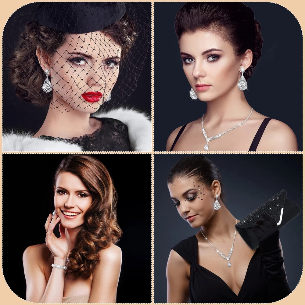4 Pcs Women Rhinestone Jewelry Set Floral Wave Teardrop Crystal Wedding Neckl...