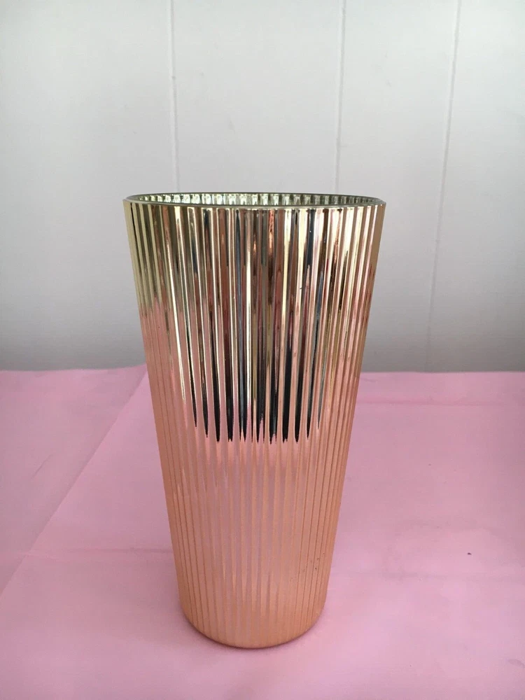 4 Piece Gold Metallic Highball Glass Set. Glasses are stunning gold metallic withdecorative ridges. Each glass is 18 ounces and 6 inches in height.Dishwasher safe. Brand new in box.