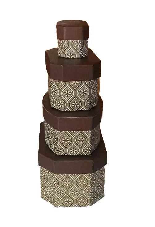 This 4 piece set of decorative gift boxes is perfect for presenting your gifts in a stylish and elegant manner. The boxes come in a beautiful combination of brown and gold colors that complement any decor theme. These boxes are ideal for wrapping up your gifts and presenting them to your loved ones on special occasions such as birthdays, holidays, or just to show them how much you care. They are perfect for holding small gifts, candies, jewelry, or even large gifts such as electronics or home decor items. With these boxes, you can be sure that your gifts will be safe and secure and will look great on any shelf or tabletop. Box sizes one each and size in inches 4(H)x4.5(W)x7(L) 3(H)×4(W)x6(L) 3(H)×3(W)×4.5(L) 2(H)x2(W)x2(L)