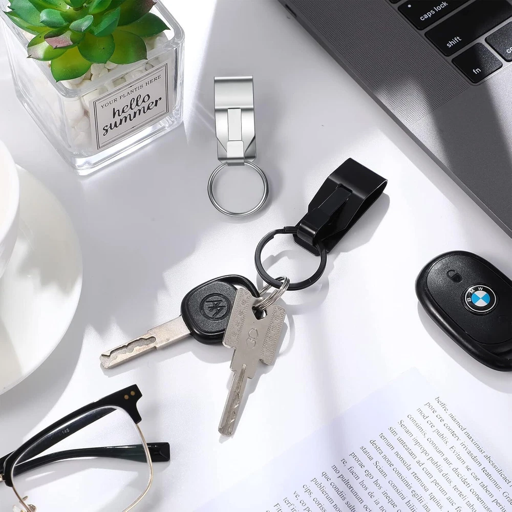 Product Description Durable Metallic Material Adopts sturdy and solid metal as material, hard to break or deform, anti rust and easy to clean. Unbending & Hard-scratch The loop of the keychain strap is detachable and can be opened with a gentle press without taking up much effort. Metal Clip Design The metal clip is convenient for you to clip the belt and remove, which is hard to fall off, no chance to loss your keys.