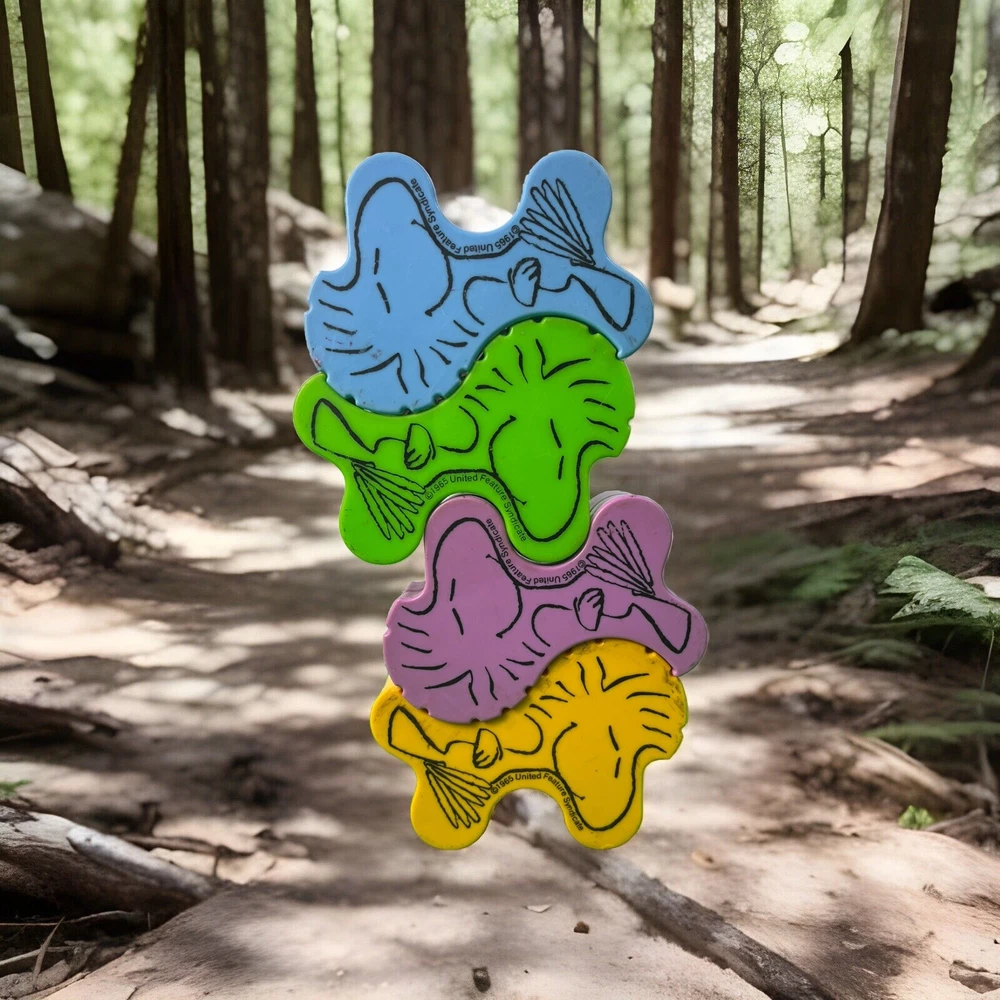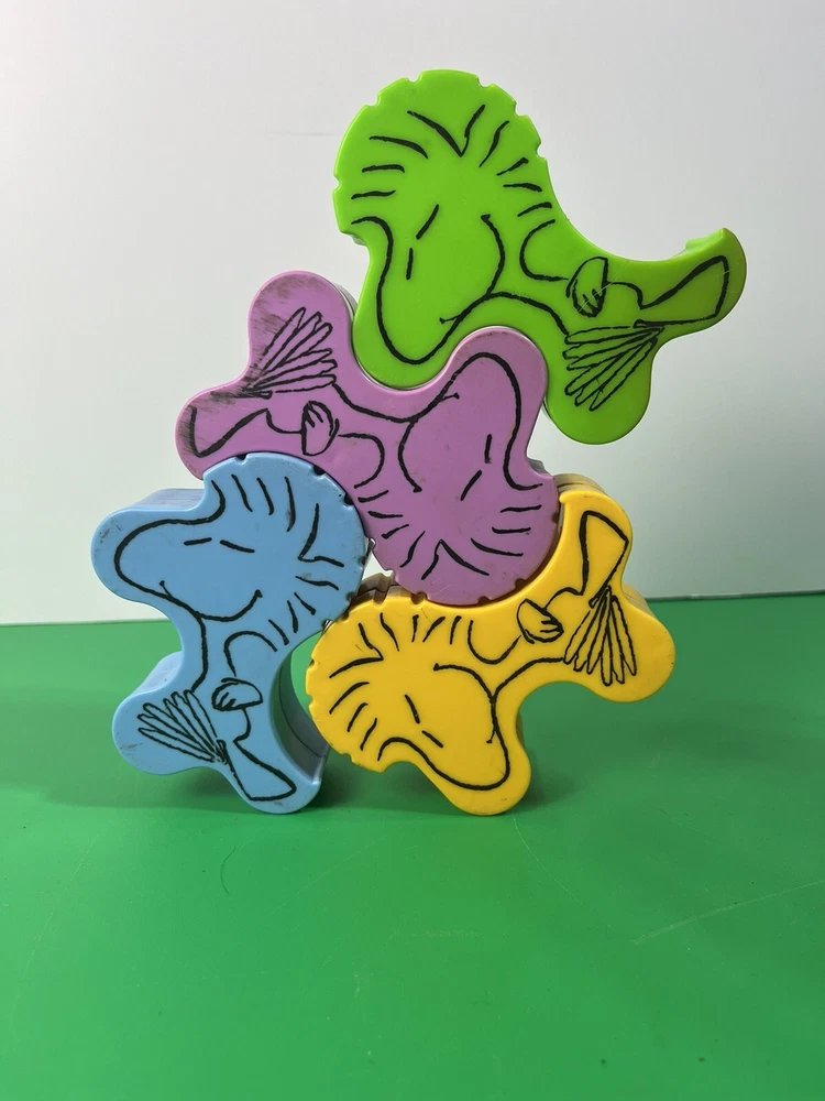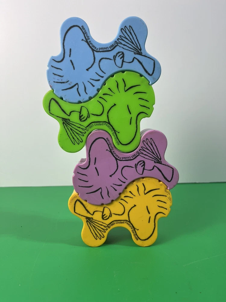 This vintage Peanuts game features four puzzle pieces with Snoopy and the balancing Woodstocks. The pieces are made of plastic and are colored multicolor. The game was manufactured in 1980 and is a great addition to any Peanuts or animation merchandise collection. The pieces are replacement pieces and are from an unknown country/region of manufacture. They come with an unknown California Prop 65 warning. This game is perfect for fans of the Peanuts TV show and franchise. See pics for condition
