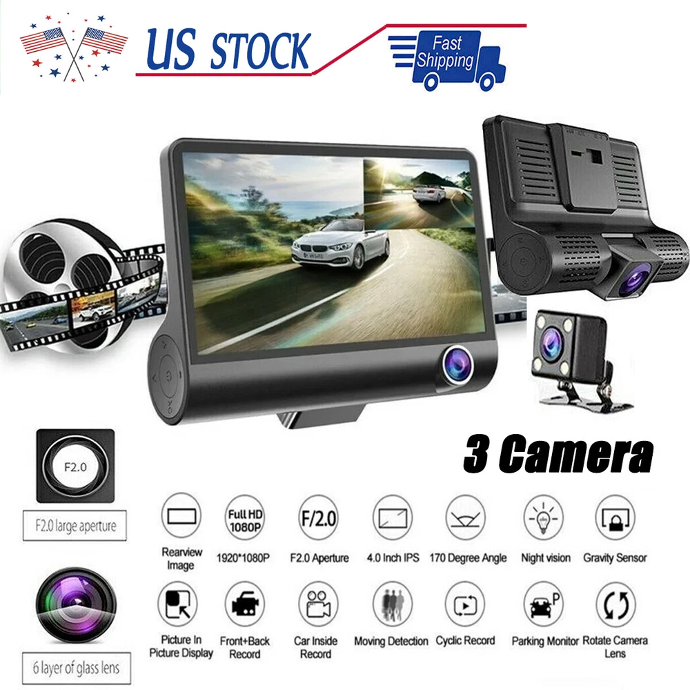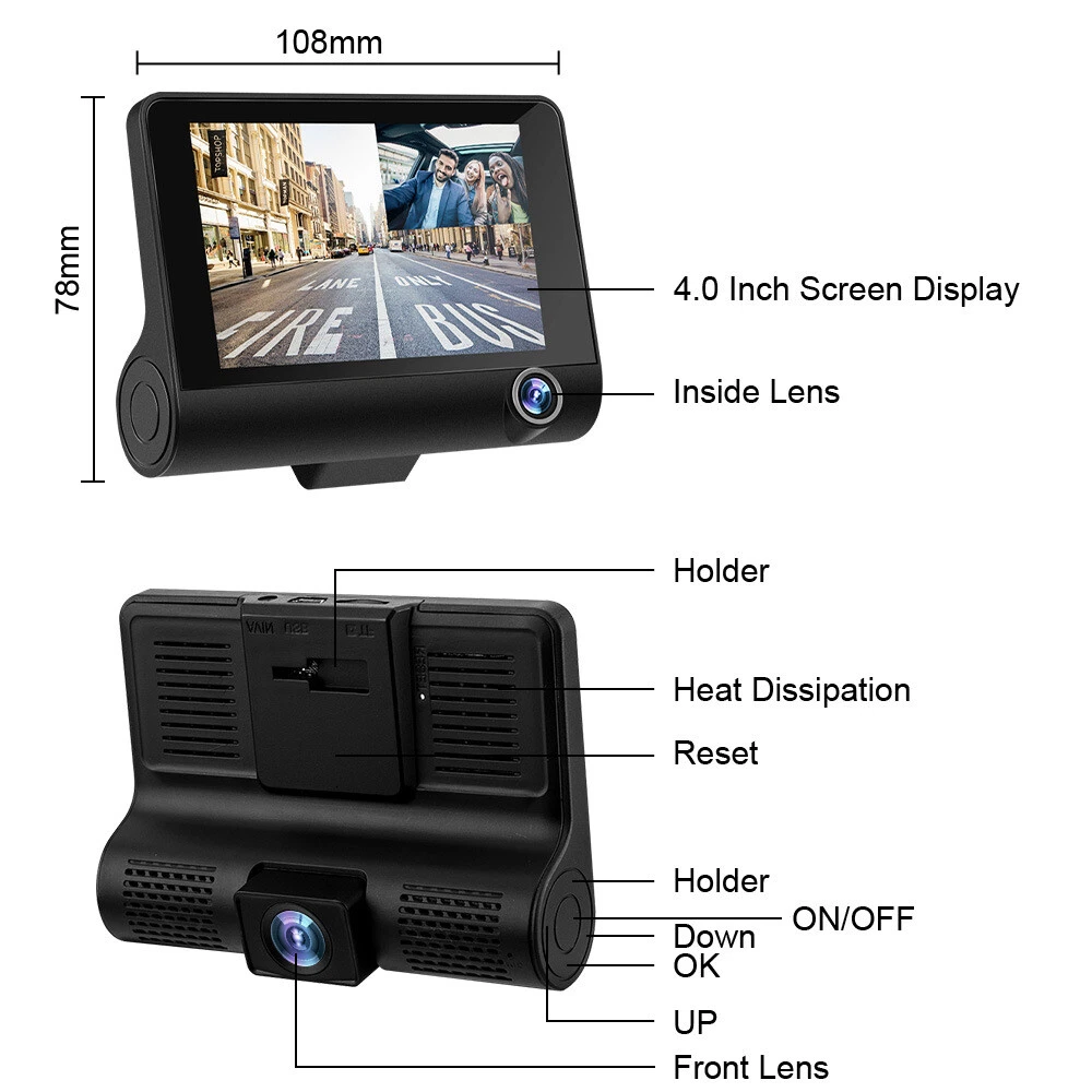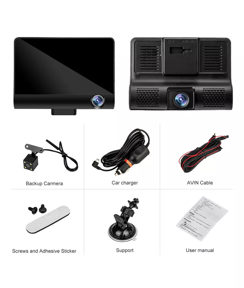 Descriptions: 【3 Camera 】 【Super Night Vision】 【Smart G-Sensor】 【Loop Recording】 Specification: Video resolution:1920*1080 30fps interpolation/1280*720 30fps (front) / 1280*720 30fps interpolation (rear) Video recording video format:using advanced H.264 impact compression technology Video frame rate:30fps Photo resolution: 1M/2M/5M/8M Photo frame format: JPG Microphone/Speaker: Built-in speaker 1W Charging method:Use car charger:5V/1.0A 1 positive 5 negative USB port Power input: USB plug car charger Battery capacity: built-in polymer battery 300MA Language: default Default language: default Chinese Track offset/forward vehicle alert (ADAS): support Dual Lens: support (not ultra wide angle or 3D) WIFI: no Bluetooth: None Memory card: TF (SD) card (CLASS10) Internal Memory: None 4" Screen Dash Cam 1080P Dual Lens Car DVR Recorder Front and Rear Camera D escriptions: 【 3 Camera 】 The whole recording expert during driving, providing you with all-round protection and evidence support. With safety escort as the core concept, have three cameras to record, the front camera is Full HD 1080P, the rear view camera is 720P and the inside camera is 480P, can record anywhere around your car and inside of your car. Whether it's a narrow lane or a congested road, the wide field of view and HD pixels will allow you to cope with it easily. 【 Super Night Vision】 Night driving has always been one of the challenges for drivers. In order to alleviate the pressure of drivers driving at night, our dash cam with built-in night vision function, excellent optical lens with 6 layers of super large aperture and technology, as well as the car camera for cars is equipped with four infrared lamps, which makes our front and rear able to provide fine image quality and keep the color sharp and details clear, even in low-light environments. 【 Smart G-Sensor】 Will keep the important fragment recorded by G-sensor in your Micro SD Card, but not overwrite them by the Loop Recording system.It will turn on the video when the front movement is detected, otherwise the recording will stop. 【 Loop Recording】 Seamless Loop Recording system provides theoretically unlimited storage from the SD card. Smart safety detection system will always keep the important fragments in your SD card, and loop recording system will automatically overwrite the non-essential part when the memory card gets full. Wide angle Specification: Video resolution:1920*1080 30fps interpolation/1280*720 30fps (front) / 1280*720 30fps interpolation (rear) Video recording video format:using advanced H.264 impact compression technology Video frame rate:30fps Photo resolution: 1M/2M/5M/8M Photo frame format: JPG Microphone/Speaker: Built-in speaker 1W Charging method:Use car charger:5V/1.0A 1 positive 5 negative USB port Power input: USB plug car charger Battery capacity: built-in polymer battery 300MA Language: default Default language: default Chinese Track offset/forward vehicle alert (ADAS): support Dual Lens: support (not ultra wide angle or 3D) WIFI: no Bluetooth: None Memory card: TF (SD) card (CLASS10) Internal Memory: None Large Supported Memory: 32GB Supported Functions:F card reading function, video recording, photo taking function, USB connection Motion Detection: support SOS/G-SENSOR:support (DA380) Default light source frequency: 50Hz How to modify the time of this unit: 1. Fully charge the battery of the machine. 2 Remove the charging power cord, adjust the time in the menu bar inside the machine, adjust the time, turn off the machine, and then turn on the machine. 3. Turn on the machine from new, is the latest time. Package List: 1 x Car DVR. 1 x Rear View Camera. 1 x USB Car Power Cable. 1 x Holder. 1 x User Manual. 2 x Bolts. 1 x Adhesive Sticker. Payment Shipping Return Contact us About us Payment 1.Paypal, Credit Card, G Pay etc, many payment way is accepted. 2.Please be sure your shipping address is correct before make a payment. Shipping 1.We will ship out the item within 1-3 business days after comfirming the payment, appreciate your patience. 2.If the items are broken on the way( we will check the orders clearly before we sent them ),please contact us in 3 days you received it. We will send you a new one or refund your payment. Return 1.We stand behind every buyer.Items can be returned for exchange or refund within 30 days. 2.Please contact us when you have any confusion of our item, we will solve the trouble for you as soon as possible. Contact us 1.This is professional Seller.We will reply your message within 24 hours. 2.Please contact us whenever you have any question about the item. We will deal with it as soon as possible. 3. If you are unhappy with the item or our service,please Contact Us before leave feedback,just give me a chance,thank you! About us 1. Unless specified otherwise, all our products are IN STOCK and are shipped from Local warehouse - Not Overseas! 2. We provide a 30 day Satisfaction Guarantee or your money back (provided items are in the same new and resaleable condition.) 3. We have a PayPal Verified Business Account, please buy with Confidence! 4. Every item will be tesrted before send.We know our products well and if we don't have the answers we will do our best to find them for you! 5. Our friendly team look forward to serving you! Your satisfaction is our No.1 Priority We will do our best to satisfacy you.