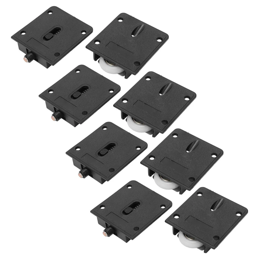 Feature: 1. Smart Sliding: The door roller enables small friction, low noise and smoother sliding, making it much easier to open the door. 2. Sturdy Design: Thanks to the sturdy structure, the sliding pulley has a strong bearing capacity for stability under various doors. 3. Broad Utility: There are 4 sets of pulley, which allows for flexible application on sliding doors, cabinets, wardrobes and so on. 4. Good Material: Combining premium stainless steel and POM materials, the wardrobe wheel is not likely to deform and very durable. 5. Easy to Install: Comes with a compact size and a light weight, the convenient installation can be quickly completed in minutes. Specification: Item Type: Sliding Door Roller Material: Stainless steel, POM Backboard Size: Approx. 54 x 51mm / 2.13 x 2.01in Pulley Outer Diameter: Approx. 25mm / 0.98in Mounting Aperture: Approx. 4mm / 0.16in Backplate Thickness: Approx. 2mm / 0.08in Package List: 4 x Sliding Door Roller 4 x Circlip Base Note: Match the appropriate size before use.