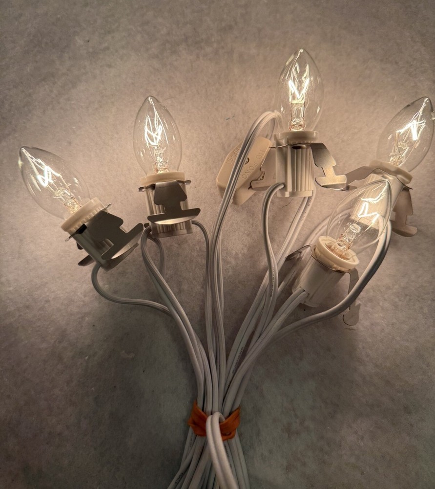 Will not guarantee life of bulbs due to used condition. Bulbs are working and tested at time of sale. C7 4 Socket Light Cord Set Dept 56 Lemax Christmas Village Sets On/Off Switch A18