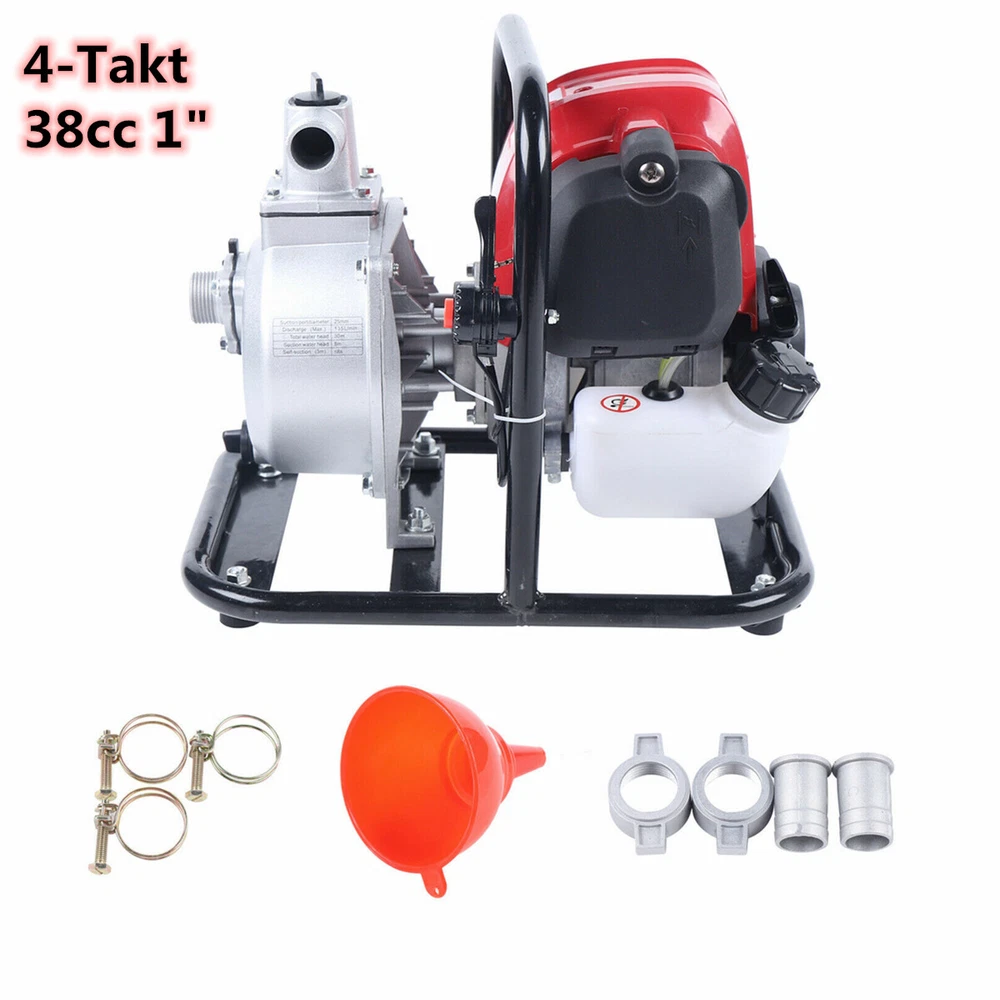 Product parameters: Model: WP 10-140F Engine model: 140F-3 Engine type: single-cylinder, air-cooled, four-stroke gasoline engine. Engine displacement: 38cc Maximum power and speed: 1.2kw, 8500r/min Fuel tank volume: 650ml Engine oil tank volume: 80ml Maximum suction range: 7m Maximum lift: 30m Suitable water pipe size: Water pump inlet: 1” (25mm) Pump outlet: 1” (25mm) Flow rate: 8000L/hour Gross/net weight: 10kg/8.2kg Packing size: 38x35x30cm/14.96*11.81*13.78in Product size: 36*28*32cm/14.17*11.02*12.60in Start mode: pull start 4 Stroke Gas Powered Water Pump Water Transfer High Pressure Irrigation Pump Product Description: WP 10-140F portable four-stroke gasoline engine water pump pump is suitable for garden lawn watering, field pumping, drainage operations, clothing crops, green seedlings, irrigation and fertilization, etc. Product parameters: Model: WP 10-140F Engine model: 140F-3 Engine type: single-cylinder, air-cooled, four-stroke gasoline engine. Engine displacement: 38cc Maximum power and speed: 1.2kw, 8500r/min Fuel tank volume: 650ml Engine oil tank volume: 80ml Maximum suction range: 7m Maximum lift: 30m Suitable water pipe size: Water pump inlet: 1” (25mm) Pump outlet: 1” (25mm) Flow rate: 8000L/hour Gross/net weight: 10kg/8.2kg Packing size: 38x35x30cm/14.96*11.81*13.78in Product size: 36*28*32cm/14.17*11.02*12.60in Start mode: pull start Features: 1. Equipped with four-stroke 140F-3 new power, super easy to start 2. Low fuel consumption, stable performance, long service life and low failure rate 3. Small size, light weight, convenient transition and simple operation 4. Low noise, low emissions and no pollution 5. High speed, parallel conveying>100M Use and maintenance: 1. First use: Choose genuine four-stroke gasoline engine oil and add it to the engine oil tank, about 80ml. Replace it every 100 working hours in the future. 2. Fill the fuel tank and engine oil tank with gasoline and engine oil respectively. Turn on the oil circuit switch, 3. Open the water filling cover above the water pump. Fill up the water diversion, use the card link to connect the water inlet pipe (note that all connections of the water inlet pipe cannot leak. Air leakage will cause the water to be unable to absorb). 4. Close the damper and pull the starter. After starting, open the throttle and increase the throttle to start working. (If there are signs of starting but failed to start, please open the damper and continue to pull the starter) 5. Good use and maintenance habits. It will make your machine work more efficiently. Note: After each work, run at idle speed for 2-3 minutes, and turn off the engine after the engine temperature drops to increase the service life. packing list: 1x water transfer pump Hose clamps and accessories English user manual Payment Delivery details Terms of sales About us Contact us Payment We accept ebay payment 。 Fees such as import duties, taxes are not included in the item price or shipping costs. These charges are the buyer's responsibility. Delivery details Shipping: 2-9 working days to: USA Terms of sales We maintain high standards of excellence and strive for hundred percent customer satisfaction. Feedback is very important to us. We hope that you contact us immediately before you give neutral or negative feedback, so that we can address your concerns. It is impossible to address issues if we do not know about them! About us Your satis faction is our ultimate goal. We work hard to earn your trust and future business. Our certified technicians have tested each item before shipping. The unit comes with 1 year limited warranty on all manufacturing defects. a) If you receive a defective item, you may return it or ask for a discount. Please contact us within 14 days after you receive the package. b) What you returned must be intact and in its original packaging as re? u. Customer is responsible for shipping costs of the returned item. c) We will cover the cost of shipping back t with the shipping rate indicated in the registration page. We will send you a new unit or refund the full payment you paid. Thank you. Contact us Business Hour Business Hour: Monday To Friday: 8:30 AM to 5:00 PM (Beijing China time) Due to time zones, our reply to your questions may not be immediately. But within above working time, we will reply your email within 24 hours. If it's non-workdays, please kindly be patient and wait till Monday. Please contact us with ebay message. Please feel free to contact us if you have any questions. Monday To Friday: 8:30 AM to 5:00 PM (Beijing China time) Due to time zones, our reply to your questions may not be immediately. But within above working time, we will reply your email within 24 hours. If it's non-workdays, please kindly be patient and wait till Monday. Please contact us with ebay message. Please feel free to contact us if you have any questions. On Dec 15, 2024 at 18:59:48 PST, seller added the following information: