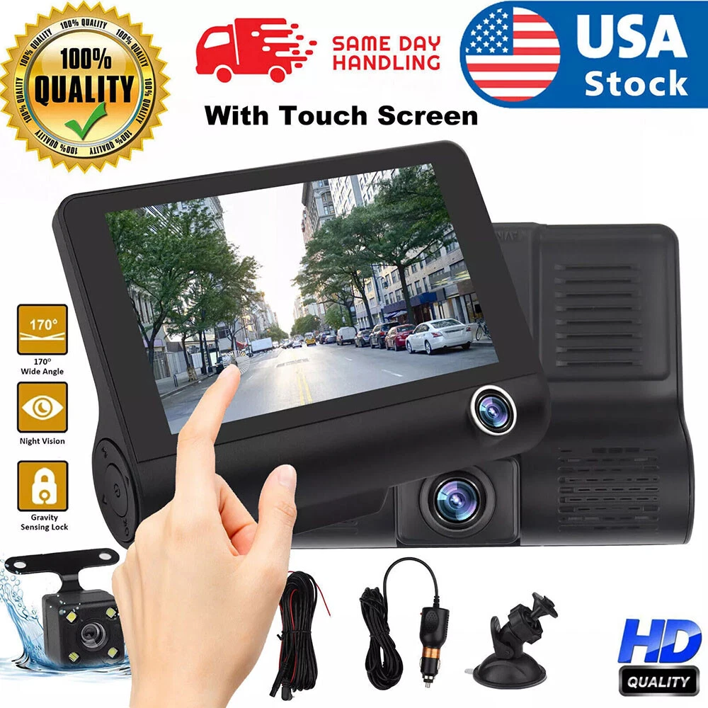 4" Touch Screen Dash Cam 1080P Dual Lens Car DVR Recorder Front and Rear Camera