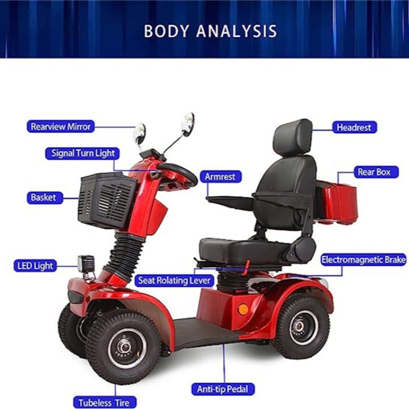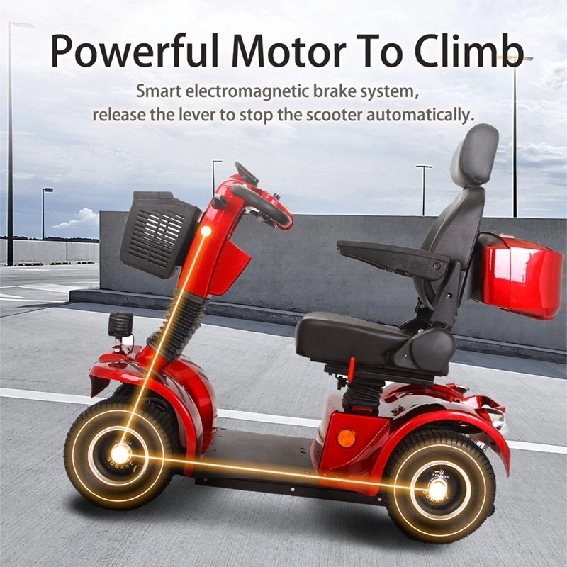 Heavy Duty 4-Wheel Mobility Scooter 800W 500lb Capacity 31-Mile Range 3-Speed Red
