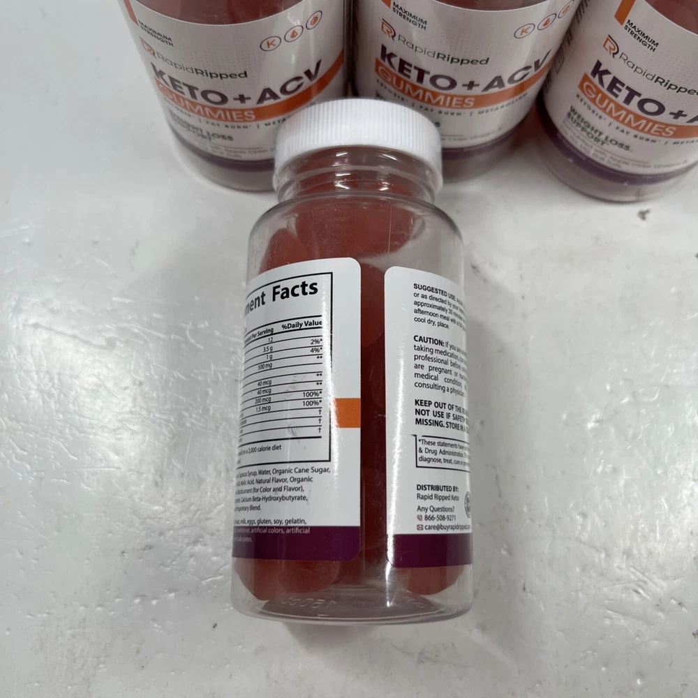 4 X Rapid Ripped Keto, Rapid Ripped ACV Weight Loss & Fat Burn 120 Gummies Thank you for viewing! We appreciate your business from the bottom of our hearts. We pack and ship all items same or next business day. We ship with USPS Ground Advantage. Always free shipping for all items across our entire store. All of our listings and descriptions are made in the best faith possible to accuracy and honesty of what we are offering. We inspect EVERY SINGLE ITEM to the best of our knowledge and ability before making it available for sale. Why shop with us? We are in the business of your satisfaction here at New Era Deals. You do not need to look any further when it comes to friendly, helpful customer service. Do not hesitate to ask us any questions. If by chance any issue arises with an item, we guarantee we will help find a solution. 30 day returns are accepted for all items available in our store. At the end of the day, we put our customers happiness above all. Please note that while we do offer returns on every item in our store, we have a 0 tolerance policy for fraudulent and unfaithful returns. If you are found to be stealing or abusing our return policy (i.e. returning an empty box or different item from what was purchased) we will 100% reach out to eBay and the local authorities. PLEASE use returns in an honest manner. Our story: We are a small group of eBay sellers with over 20 total years of experience selling on eBay. We collaborated in January 2024 to create project New Era Deals! Selling here on eBay is our pride and passion and lets us express our entrepreneur goals. We are very pleased to bring to our valued customers quality products across endless categories. We appreciate every single one of our past, present, and future customers very deeply!