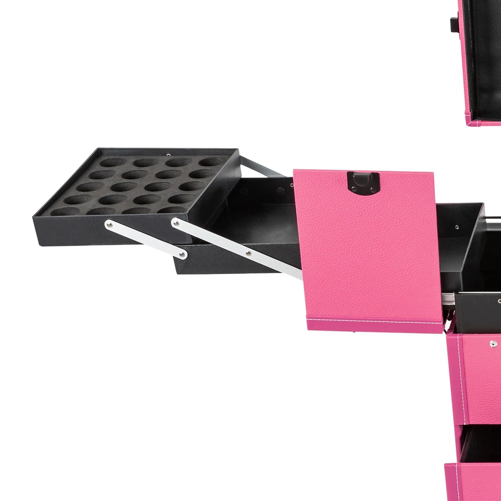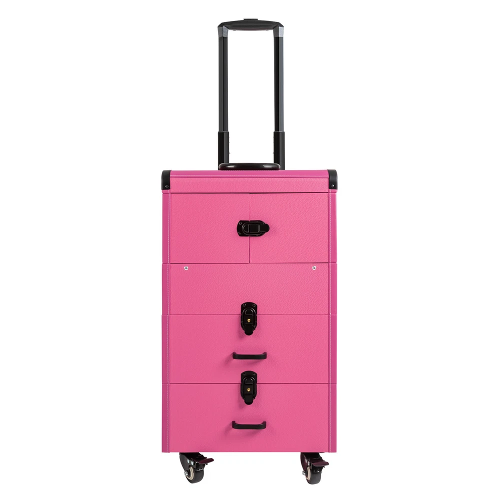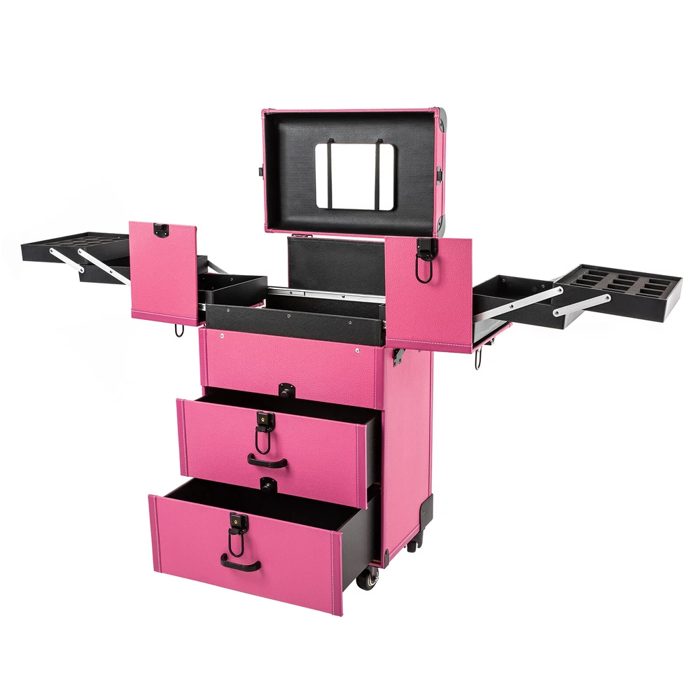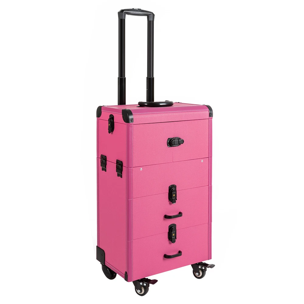 4 in 1 Rolling Zinc Alloy Makeup Train Case Salon Cosmetic Trolley Organizer Box Description If you are a make-up artist or embroiderer who often needs to go out to work, you will need our makeup train case. It is made of premium material, sturdy and durable. 4 universal wheels and a large capacity make it an excellent makeup assistant when outgoing. With its beautiful appearance, it is an ideal gift for your mother, sister, or wife. In addition, locks and latches can ensure high safety, so you can use this item confidently. Key Features Long Service Life: High-quality wood board and PVC make this product anti-corrosion, waterproof, and rustproof and not easily deform, thus ensuring a long service life. Easy to Move & Carry: The 4 universal wheels(2 with brakes) ensure silent and smooth rolling and you can fix it stably. With the practical pull rod and comfortable handle, you can carry this product with less effort. Large Capacity: 4 retractable trays on the top, a large space in the middle, and 2 large drawers at the bottom can provide enough storage space for various cosmetics and makeup tools, such as foundation, eye shadow, blush powder, skin care products, sprays, hair tools. Neat Storage: With different partitions, you can arrange cosmetics in an orderly manner, saving the countertop space and saving time searching for cosmetics, giving your dressing table a new look. Excellent Load-bearing Capacity: The premium materials and rectangular structure provide the make-up case with a maximum weight-bearing capacity of about 110.23 lbs. You can place all kinds of hairdressing and beauty tools on it with confidence. Ready to Use: You can use this product without tedious assembly after receiving it, which saves you time and energy. Stylish Appearance: The rectangular frame, beautiful rose color, and anti-scratch diamond patterns give this product a stylish look, which is a brilliant view when you are carrying it outside. Thoughtful Design: The clear and bright makeup mirror in the case is convenient for you to create the ideal makeup look. The EVA partition can protect your cosmetics from being damaged and allow for neat storage. Ideal Gift: Its exquisite design and large capacity make this product a great gift to your mother, girlfriend, sisters, wife and loved ones so that they can enjoy more convenient makeup time. Protective Shipping: To prevent the product from being damaged and bumped during transportation, we fill the package with an anti-collision sponge to protect your products to the maximum extent possible. Customer Service: We aim to provide quality products and services. If you have any problems, please feel free to contact us. We will reply and solve the problem for you as soon as possible. Details Zinc Alloy Corner Wrap: The zinc alloy corner wrap with a round design can not only protect your case from impact but also better care for your skin. Locks and Latch: They are solid and durable to effectively protect the inside items from loss. Application Professional makeup artists, hairdressers, beauticians, manicurists, beauty lovers, etc. can use this product to store cosmetics and makeup tools. It is ideal for makeup contests, wedding makeup scenarios, travel makeup, outdoor shooting, cinemas, dressing rooms, crew, tourism, beauty salons, and more. How to Lock 1. Lift the steel ring. 2. Press the lock plate. 3. Insert the key. 4. Turn clockwise to lock it, and turn counterclockwise to open it. 5. The case is locked. Specification Color: Rose Shape: Rectangular Material: Zinc Alloy, Wood Board, PVC, EVA Style: Modern Assembly Required: 1 Number of Items: 1 Mounting Type: Free Standing Overall Load-bearing Capacity: About 50kg/110.23 lbs Wheel Height: 7cm/2.76in Overall Product Size: 37*24*66cm/14.57*9.45*25.98in Pull Rod Length: 43cm/16.93in Mirror Size: 16.5*11cm/6.5*4.33in Each Tray Size: 19.5*16.5*4.5cm/7.68*4.69*1.77in Middle Space Size: 34*21*12cm/13.39*8.27*4.72in Each Drawer Size: 34*20*11cm/13.39*7.87*4.33in Package Size: 42*32*72cm/16.54*12.6*28.35in Net Weight: 9.8kg/21.61 lbs Gross Weight: 12kg/26.46 lbs Package Included 1 x Makeup Train Case 2 x Keys Notes 1. The service wear of the case is a normal phenomenon. In the process of daily use, please try to avoid excessive impact and drop to extend the lifespan of the product. 2. Please use soft tools and water to clean. Please keep away from corrosive liquids. Please avoid long-term exposure to the sun. 3. Please clear the wheels in time to maintain smooth movement. 4. Please allow the slight color difference caused by the shooting light and the 1-3cm error due to manual measurement. Please make sure you do not mind before you order. Payment Delivery details Terms of sales About us Contact us Payment We accept ebay payment ă Fees such as import duties, taxes are not included in the item price or shipping costs. These charges are the buyer's responsibility. Delivery details Shipping: 2-9 working days to: USA Terms of sales We maintain high standards of excellence and strive for hundred percent customer satisfaction. Feedback is very important to us. We hope that you contact us immediately before you give neutral or negative feedback, so that we can address your concerns. It is impossible to address issues if we do not know about them! About us Your satis faction is our ultimate goal. We work hard to earn your trust and future business. Our certified technicians have tested each item before shipping. The unit comes with 1 year limited warranty on all manufacturing defects. a) If you receive a defective item, you may return it or ask for a discount. Please contact us within 14 days after you receive the package. b) What you returned must be intact and in its original packaging as re? u. Customer is responsible for shipping costs of the returned item. c) We will cover the cost of shipping back t with the shipping rate indicated in the registration page. We will send you a new unit or refund the full payment you paid. Tha