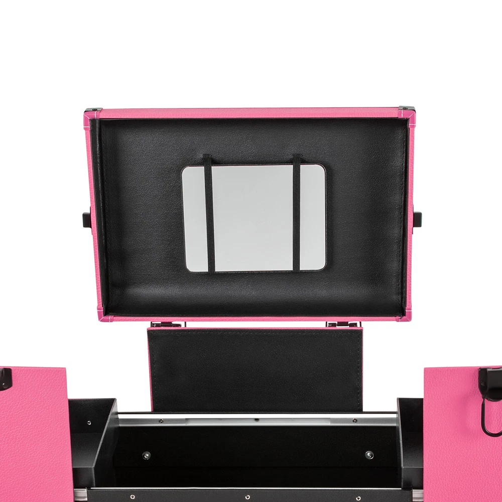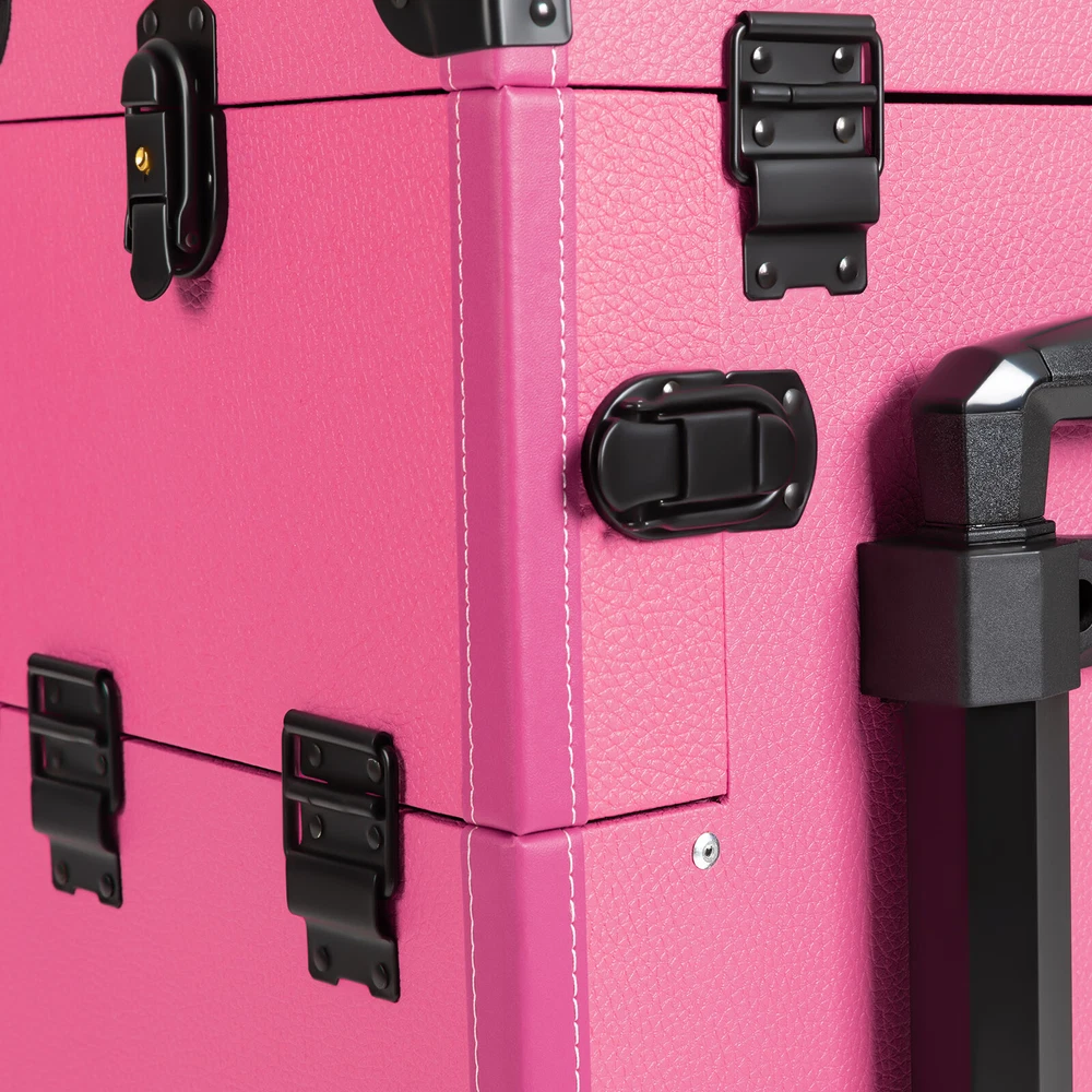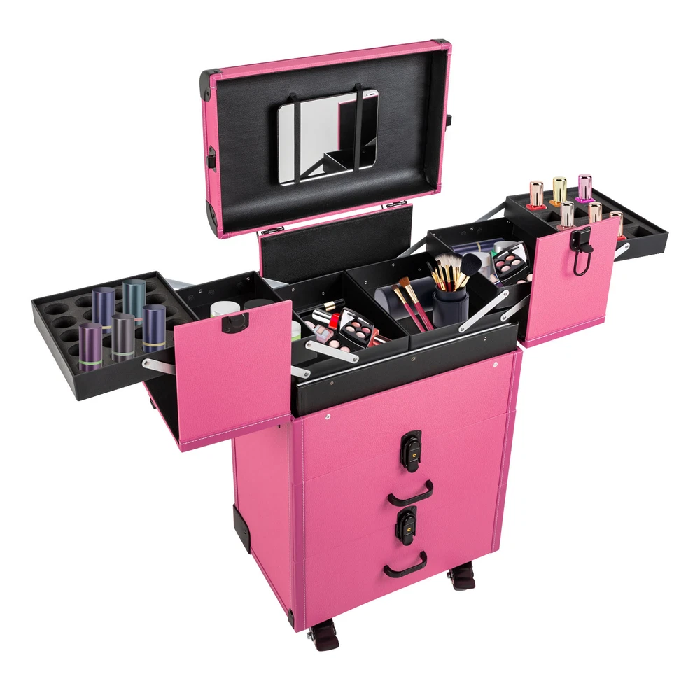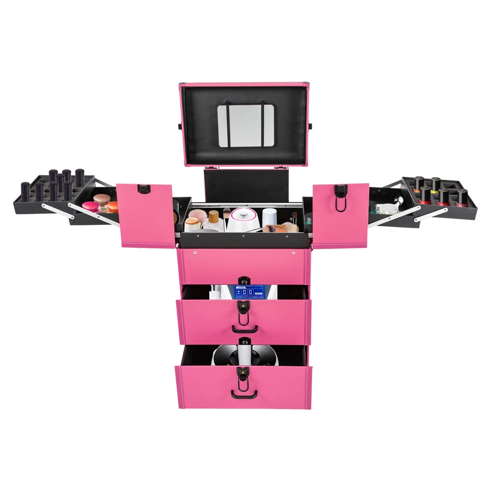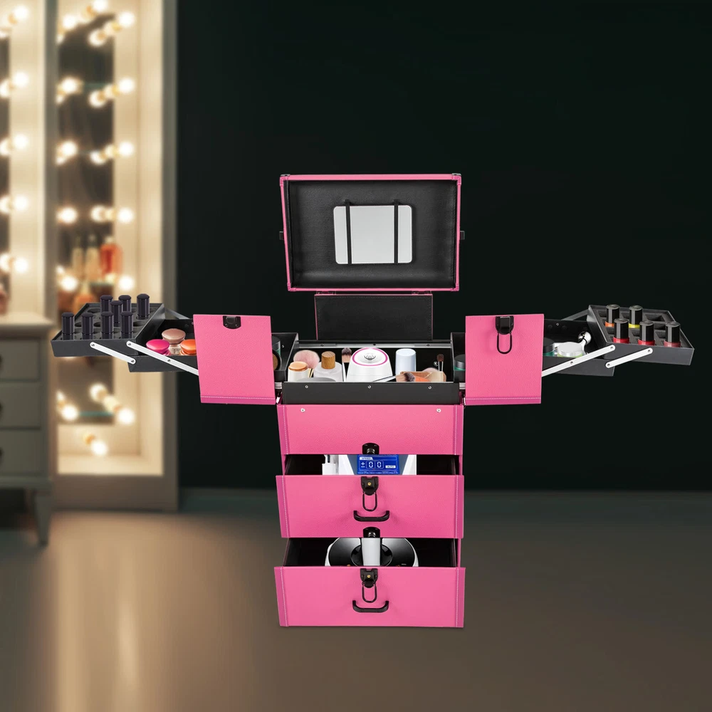 4 in 1 Rolling Zinc Alloy Makeup Train Case Salon Cosmetic Trolley Organizer Box Description If you are a make-up artist or embroiderer who often needs to go out to work, you will need our makeup train case. It is made of premium material, sturdy and durable. 4 universal wheels and a large capacity make it an excellent makeup assistant when outgoing. With its beautiful appearance, it is an ideal gift for your mother, sister, or wife. In addition, locks and latches can ensure high safety, so you can use this item confidently. Key Features Long Service Life: High-quality wood board and PVC make this product anti-corrosion, waterproof, and rustproof and not easily deform, thus ensuring a long service life. Easy to Move & Carry: The 4 universal wheels(2 with brakes) ensure silent and smooth rolling and you can fix it stably. With the practical pull rod and comfortable handle, you can carry this product with less effort. Large Capacity: 4 retractable trays on the top, a large space in the middle, and 2 large drawers at the bottom can provide enough storage space for various cosmetics and makeup tools, such as foundation, eye shadow, blush powder, skin care products, sprays, hair tools. Neat Storage: With different partitions, you can arrange cosmetics in an orderly manner, saving the countertop space and saving time searching for cosmetics, giving your dressing table a new look. Excellent Load-bearing Capacity: The premium materials and rectangular structure provide the make-up case with a maximum weight-bearing capacity of about 110.23 lbs. You can place all kinds of hairdressing and beauty tools on it with confidence. Ready to Use: You can use this product without tedious assembly after receiving it, which saves you time and energy. Stylish Appearance: The rectangular frame, beautiful rose color, and anti-scratch diamond patterns give this product a stylish look, which is a brilliant view when you are carrying it outside. Thoughtful Design: The clear and bright makeup mirror in the case is convenient for you to create the ideal makeup look. The EVA partition can protect your cosmetics from being damaged and allow for neat storage. Ideal Gift: Its exquisite design and large capacity make this product a great gift to your mother, girlfriend, sisters, wife and loved ones so that they can enjoy more convenient makeup time. Protective Shipping: To prevent the product from being damaged and bumped during transportation, we fill the package with an anti-collision sponge to protect your products to the maximum extent possible. Customer Service: We aim to provide quality products and services. If you have any problems, please feel free to contact us. We will reply and solve the problem for you as soon as possible. Details Zinc Alloy Corner Wrap: The zinc alloy corner wrap with a round design can not only protect your case from impact but also better care for your skin. Locks and Latch: They are solid and durable to effectively protect the inside items from loss. Application Professional makeup artists, hairdressers, beauticians, manicurists, beauty lovers, etc. can use this product to store cosmetics and makeup tools. It is ideal for makeup contests, wedding makeup scenarios, travel makeup, outdoor shooting, cinemas, dressing rooms, crew, tourism, beauty salons, and more. How to Lock 1. Lift the steel ring. 2. Press the lock plate. 3. Insert the key. 4. Turn clockwise to lock it, and turn counterclockwise to open it. 5. The case is locked. Specification Color: Rose Shape: Rectangular Material: Zinc Alloy, Wood Board, PVC, EVA Style: Modern Assembly Required: 1 Number of Items: 1 Mounting Type: Free Standing Overall Load-bearing Capacity: About 50kg/110.23 lbs Wheel Height: 7cm/2.76in Overall Product Size: 37*24*66cm/14.57*9.45*25.98in Pull Rod Length: 43cm/16.93in Mirror Size: 16.5*11cm/6.5*4.33in Each Tray Size: 19.5*16.5*4.5cm/7.68*4.69*1.77in Middle Space Size: 34*21*12cm/13.39*8.27*4.72in Each Drawer Size: 34*20*11cm/13.39*7.87*4.33in Package Size: 42*32*72cm/16.54*12.6*28.35in Net Weight: 9.8kg/21.61 lbs Gross Weight: 12kg/26.46 lbs Package Included 1 x Makeup Train Case 2 x Keys Notes 1. The service wear of the case is a normal phenomenon. In the process of daily use, please try to avoid excessive impact and drop to extend the lifespan of the product. 2. Please use soft tools and water to clean. Please keep away from corrosive liquids. Please avoid long-term exposure to the sun. 3. Please clear the wheels in time to maintain smooth movement. 4. Please allow the slight color difference caused by the shooting light and the 1-3cm error due to manual measurement. Please make sure you do not mind before you order. Payment Delivery details Terms of sales About us Contact us Payment We accept ebay payment ă Fees such as import duties, taxes are not included in the item price or shipping costs. These charges are the buyer's responsibility. Delivery details Shipping: 2-9 working days to: USA Terms of sales We maintain high standards of excellence and strive for hundred percent customer satisfaction. Feedback is very important to us. We hope that you contact us immediately before you give neutral or negative feedback, so that we can address your concerns. It is impossible to address issues if we do not know about them! About us Your satis faction is our ultimate goal. We work hard to earn your trust and future business. Our certified technicians have tested each item before shipping. The unit comes with 1 year limited warranty on all manufacturing defects. a) If you receive a defective item, you may return it or ask for a discount. Please contact us within 14 days after you receive the package. b) What you returned must be intact and in its original packaging as re? u. Customer is responsible for shipping costs of the returned item. c) We will cover the cost of shipping back t with the shipping rate indicated in the registration page. We will send you a new unit or refund the full payment you paid. Tha