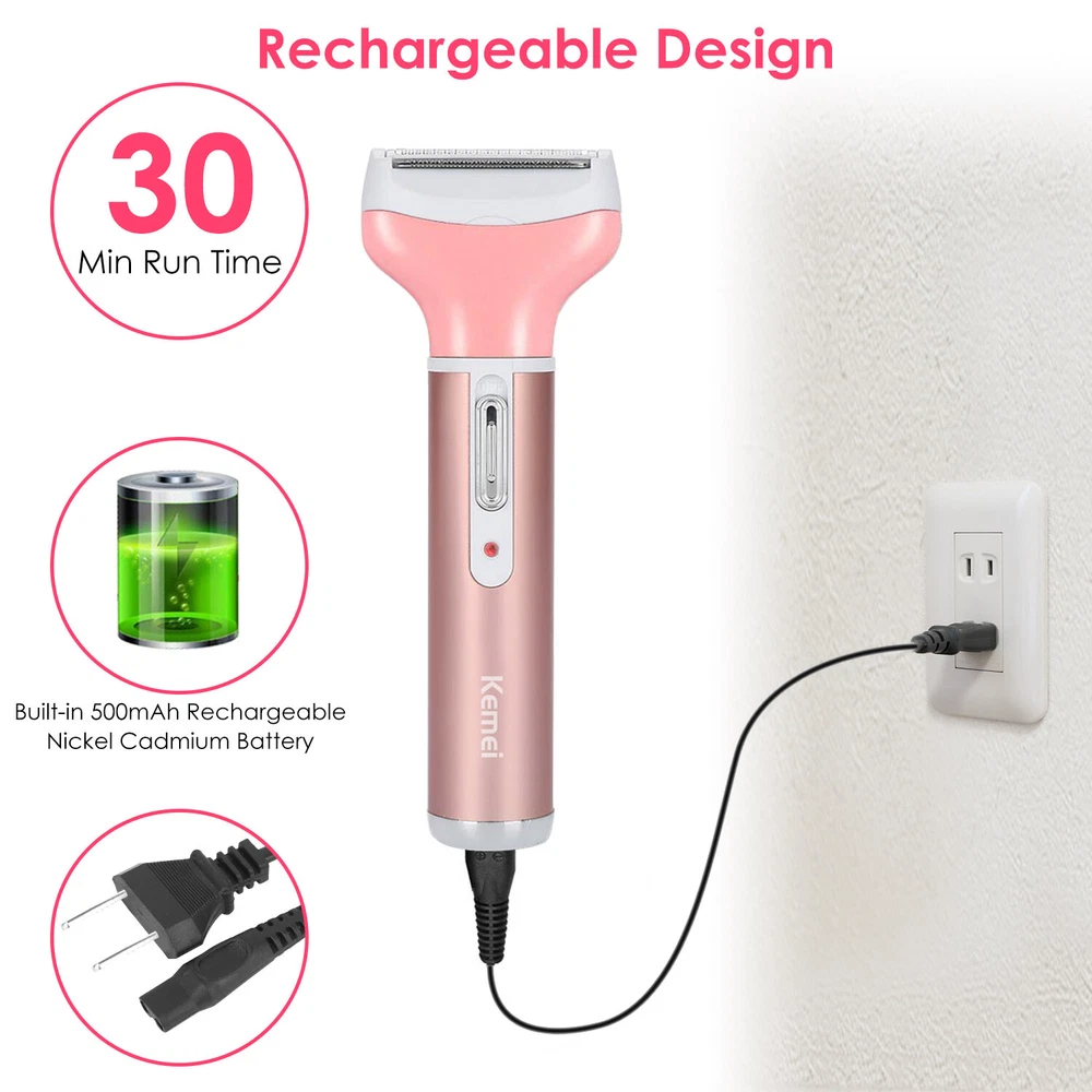 Store Categories Store Categories Other 4 in 1 Wet & Dry Painless Rechargeable Lady Shaver Electric Razor for Women Product Description Overview: This 4 in 1 women’s personal bikini shaver can help you remove unwanted hair anytime anywhere. It is suitable for hair on your face, arms, legs, nose, eyebrows, armpit, bikini lines, etc. You do not have to buy a variety of different hair removal tools. This body grooming kit solves all your problems. Portable and handy kit is a must-have device for home & travel. It is convenient and easy to hold in hand to shave hairs easily and efficiently with the ergonomic grip handle. Features: 4 In 1 Ladies Electric Shaver: The 4 in 1 Hair Remover includes 4 interchangeable hair removal razor heads:nose hair trimmer,eyebrow trimmer,body shaver,beard trimmer and lady shaver,which can help you to remove unwanted hair,you can use on eyebrow,face peach fuzz,cheeks,upper lips,chin,neck,bikini line,arm,leg and other body area. And the one-button design is very easy to use anytime. Safe & Efficient: Use super thin blade and smooth pivoting head to trim safely on your sensitive skin comfortably without irritation. Besides,it works quickly to save your time on hair removal with high speed trimming engine in the machine. Portable Hair Remover Kit: The facial hair removal for women is powered by built-in rechargeable battery,support with the charging port. So you don’t need to worry about running out of power or wasting money to replace batteries. Easily carry in your pocket,briefcase,bag,perfect for travel with its portable design. Easy To Clean: 4 Removable heads are all water resistant,so that you just need to clean the head with the little brush then rinse it under the water for easy cleaning.(Note:The body of shaver is not waterproof,please remove the body when washing the 4 heads). Ideal Gift: Designed with anti-allergic material are not direct contact with skin. Gentle enough for daily use to keep up with the hair re-growth and leave it smooth. Comfortable grip and perfect gift for valentine's day, mother's day and other special holidays. Below Is The Introduction Of 4 Heads: Facial Hair Remover We offer a facial depilation experience free of any irritation. The head depilation head is easy to use. It allows you to precisely remove facial hair. Get rid of unwanted hair and hair on your face. Your complexion will appear visibly smooth,bright and fresh. The application of make-up will be much simpler and the application of impeccable foundation. Body Hair Shaver Epilator The body trimmer can smoothly and gently trim the unwanted hair on arms,arms,armpit,underarms and bikini area. The ergonomically shaped head allows comfortable use. Nose Ear Hair Trimmer The nose epilator allows you to safely remove nose,ear and even facial hair. The double-edged blades rotate up to 360 ° for a perfect depilation from the tip and sides without pulling the hairs. Eyebrow Trimmer Thanks to the two precision interlocking eyebrows combs,shaves and shapes the eyebrows defining length and style to perfection. Specifications: Brand: KEMEI Product Type: 4 in 1 Women Electric Shaver Color: Pink Material: Aluminum Alloy+ABS+Stainless Steel Blade Voltage: (US) 110V; 50/60HZ; 3W Charging Time: 8Hrs Working Time: About 30mins Item Size: 22x13.5x3.3cm/8.66x5.31x1.3in Item Weight: 188g/0.41lbs Package Size: 22x13.5x3.3cm/8.66x5.31x1.3in Package Weight: 188g/0.41lbs Package Contents: 1 x Lady Shaver Main Engine 1 x Hairs Trimmer Head w/ Protective Cover 1 x Nose Hairs Trimmer Head 1 x Eyebrow Trimmer Head 1 x Body Trimmer Head w/ Protective Cover 1 x Charging Cable (US) 1 x Cleaning Brush 1 x User Manual Notice:Contact us pls first,if you need after-sales service.we will reply with 12 hours.Thank you Payment Policy Shipping Policy Returns Policy Contact US Payment Policy Shipping will be arranged within 1 business day once Full payment is cleared. Shipping Policy Free same days Shipping! All orders will be processed and shipped within 24 hours, Monday to Friday in most cases. Most packages will be shipped via USPS First Mail, it usually takes 3-5 days for delivery. A tracking number will be emailed to you upon shipment. Please note that USPS does not update tracking information location by location. We only ship to address that you input during Paypal checkout. Buyers are responsible for wrong or undeliverable address. We do not include an invoice or any advertising materials with our shipm ents. Returns Policy 1. We stand behind our items and offer 30 days warranty . All items are in new and working condition unless specified otherwise elsewhere in the description. 2. All Returns - defective or otherwise - MUST BE PREAUTHORIZED to guarantee refund or exchange. Please contact us to get an authorization and return address. 3. Buyer agrees to pay for the cost of re-shipment for undeliverable or wrong addresses. 4. Buyer is responsible for Return Postage as well as a 20% restocking fee if return/replacement is not a result of our mistake such as wrong item. 5. Replacement or Refund will be made upon receipt of the returned item. Please include tracking number so we can process ASAP. If you do not wish to wait for a replacement, please repurchase the item. 6. ALL REFUNDS will be processed via PayPal. Please double check via PayPal history and transaction for confirmation. PayPal will send it back to whatever you used to pay within 3-5 days. Contact US Please be patient when contacting us, all messages will be replied within 12 hours. Please let us know immediately if a package is damaged upon arrival. Feel free to contact us if you’d like to combine shipping on your purchases. We appreciate your feedback and we will send buyers positive feedback after a shipment has been processed. Customer satisfaction is significant to us. If you are dissatisfied with a transaction for any reason. Before taking any action, please contact us through eBay and we will do everything we can to help you. Copyr