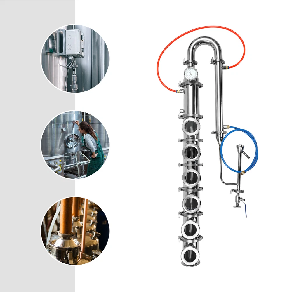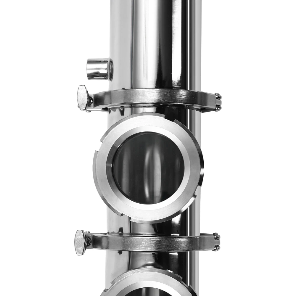 4" inch Reflux Column Moonshine Still w/ Dephlegmator, Condenser, Bubble Plate Description Made of high-quality stainless steel, this plate stainless moonshine still flute column is sturdy and durable. It uses the distillation method of making wine, which helps you to make mellow wine quickly, while also ensuring the health and taste of the wine. Home-brewed wine can also reflect your thoughts and emotions, which will undoubtedly add an unforgettable touch to your wine-tasting journey. Let's enjoy the aroma of the hand-made wine and savor the excitement of life at home! Key Features Strong and Durable : High-quality 304 stainless steel, T2 copper and polished, brushed and passivated process make this product have good corrosion resistance and high-temperature resistance, which can be used for a long time. Thoughtful Design : This product is equipped with sight glasses, which are convenient for you to observe the brewing state of the wine, and you can also see what is going on inside the reflux distillation column, making it easy for you to adjust the reflux to the proper level. Complete Kit : This kit includes a U-shaped elbow, condenser, spout, and other professional accessories to make your brewing experiments easy. High-quality Spirit Making : The spirit gas reacts fully with the pure copper tower core and distills layer by layer, effectively removing methanol and accurately removing phenol oils, thus greatly improving the quality of the spirit and making it more refreshing. Independent Division: This product adopts independent divisions, which can be operated in sections or all according to your production needs, realizing the maximum degree of versatility. Enjoy Life: Homebrewing is more than just a way for you to enjoy delicious wine. It is also a way to slow down and savor the moment. DIY Fun : Homebrewing is a meditative process that requires patience, concentration, and care. Doing an interesting experiment with your child in your free time can develop your child's ability to practice, observe, think, imagine, learn, understand, analyze and organize, and promote healthy growth. Save Money : Making your wine at home can save you a lot of money compared to the expensive wines on the market. Plus, it can be reused many times, allowing you to savor a wide range of wines with unique flavors! Drink with Confidence : From selection to fermentation, from storage to tasting, every aspect of homebrewing is under your strict control. It is cleaner and healthier than the wine on the market. Simple Installation: The simple construction of the product and the complete installation parts will help you install it in a short time. Effortless Clean : With its smooth surface, simple construction, and removable design, you can simply rinse it with water or wipe off surface dust with a damp rag. Protective Shipping: To prevent the product from being damaged and bumped during transportation, we packed it with pearl cotton to protect your product to the maximum extent possible. Details Sealing Rings: We equip you with sealing rings to provide you with an all-around seal, without air leakage during the brewing process to give you a more mellow wine! Wine Dispenser : It has a delicate design. It ensures the smoothness of wine dispensing and also reflects the overall beauty of the product. Thickened Bottom : The thickened bottom allows for a variety of heating methods, including gas cooktops, induction cooktops, electric clay pots, wood-fired and more. Temperature Gauge : It can display the temperature of the wine in real time, which is convenient for you to operate. Two built-in temperature measurement units (°C, °F) allow for a more controlled and precise distillation process. Two Tubes : They connect to the condenser and can be used to remove the first distilled spirits. Application It is a home distillation equipment. It can be used to make wine, whisky, liquor, pure dew, grain alcohol, brandy, and so on. Specification Color: Silver Material: 304 Stainless Steel, T2 Copper Process: Polished, Brushed, Passivated Style: Modern Mount Type: Free Standing Principle: Distillation Number of Layers: 6 Thermometer Temperature Range: -10-100℃/0-220℉ Distillation Temperature: 77-79℃/170.6-174.2°F Applicable Boiler Capacity: ≤200L/52.83Gal Product Size: 141.5*43cm/55.7*16.9in Gross Weight: 22kg/48.5lbs Net Weight: 20kg/44.1lbs Package Size: 69*38*38in/27.2*15*15in Package Included 1*Plate Stainless Moonshine Still Flute Column Other Accessories for Assembly Notes The boiler is not included, so please order your own separately. Please note that the distillation temperature is between 170.6°F and 174.2°F. When this temperature is reached, it will distill automatically. Please allow the slight color difference caused by the shooting light and 1-3 cm error due to manual measurement, and make sure you do not mind before ordering. Payment Delivery details Terms of sales About us Contact us Payment We accept ebay payment 。 Fees such as import duties, taxes are not included in the item price or shipping costs. These charges are the buyer's responsibility. Delivery details Shipping: 2-9 working days to: USA Terms of sales We maintain high standards of excellence and strive for hundred percent customer satisfaction. Feedback is very important to us. We hope that you contact us immediately before you give neutral or negative feedback, so that we can address your concerns. It is impossible to address issues if we do not know about them! About us Your satis faction is our ultimate goal. We work hard to earn your trust and future business. Our certified technicians have tested each item before shipping. The unit comes with 1 year limited warranty on all manufacturing defects. a) If you receive a defective item, you may return it or ask for a discount. Please contact us within 14 days after you receive the package. b) What you returned must be intact and in its original packaging as re? u. Customer is responsibl