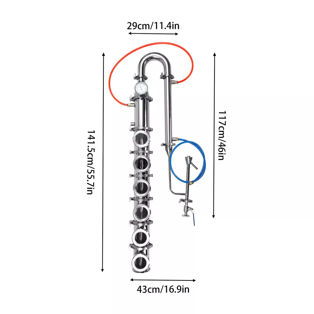 4" inch Reflux Column Moonshine Still w/ Dephlegmator, Condenser, Bubble Plate