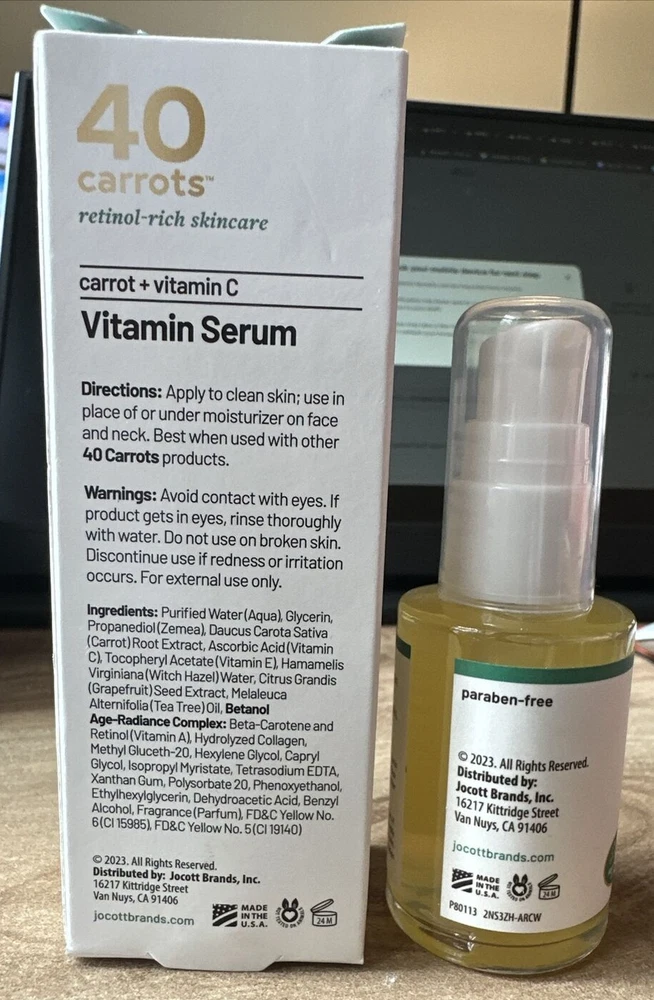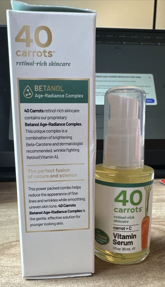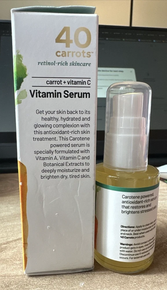 40 CARROTS+ CARROT + VITAMIN C VITAMIN SERUM 1 OZ NIB Please see all photos and read description items as is no returns. Please feel free to reach out with any questions! ***Sealed items***Sealed never used, sometimes seal is weak and comes up when opening to remove the seal or seal could be missing, rest assured its never been used. ******* *May not have a seal/weak seal, Item is new and unused I assure you item will be tightly and carefully packaged when shipped to avoid mishaps. MAKE OFFERS! :) *i do sometimes test a product if it had a sprayer or a twister just to make sure the item is in great working order so you receive a useable item you?ve been searching and missing! however things can be overlooked, so please do not hesitate to reach out to me with any questions on an item or a specific photo, i do have a disclaimer on all items in my shop as i moved across the country and some items have blemishes or are now missing a box or the box is distressed or cap.