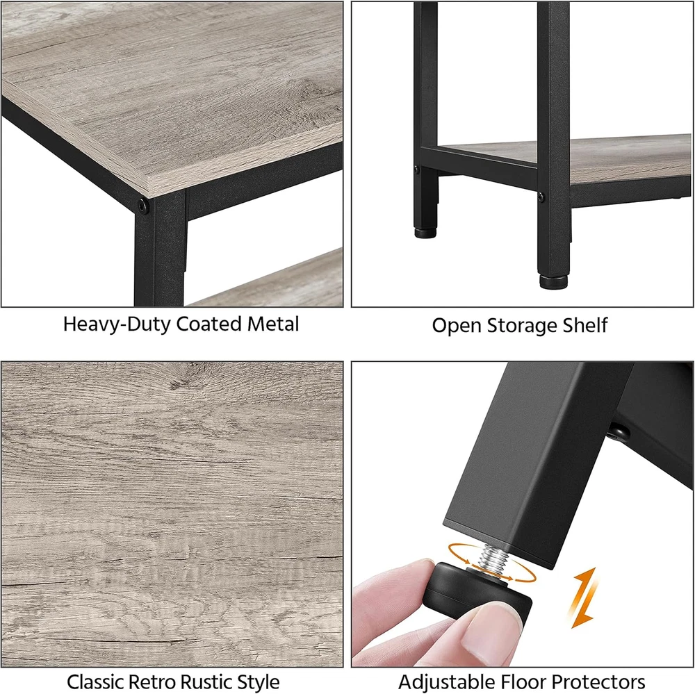 Ample Space: Our console table embraces 3 storage shelves, expanding limited space vertically and allowing you to separately store your different items. Measuring 40 inches L × 14 inches W × 31.5 inches H, it is perfect for limited space Multi-scenario Applicable: This console table is designed to serve different scenes, such as serving as a sofa side or back table in your living room, as a storage rack for tableware or coffee maker in your kitchen, an entryway table in the hallway, or as a staircase console at the head of the stair Selected Materials: This vintage console table is made of qualified iron and MDF material. Tables made from such materials have greater weight capacity and are more sturdy and durable to use. Besides, the surface is covered with lamination veneer, resistant to both water and scratches Adjustable Protective Feet: Under each of the feet provides an adjustable protective footpad, enabling this sofa table to better adapt to uneven ground and preventing it from slipping during usage or slight scratches during movement Stylish: This entryway table is designed in a simple but vintage style. It can easily match your room decor and serve as an elegant addition to your house Product Description This cost-effective vintage sofa table is made of high quality MDF and iron material, which ensures a long life span. This entryway table features 3 storage, which offers ample storage space to keep items orderly and organized. This console sofa entryway table is rustic and simplistic, which matches your home decor and highlight your taste. Its proper size makes it perfect for living room, study, kitchen and hallways as console table, sofa table, or entry table. It can easily match with your room decor and serve as an elegant addition to your house. Specifications: Material: MDF & Iron Color: Classic Grey Overall Dimension: 40 x 14 x 31.5’’ (L x W x H) Shelf Load Capacity: 66 lb Total Load Capacity: 198 lb Layer Spacing: 12’’ Ground Clearance: 3.5’’ G.W.: 42 lb N.W.: 37.3 lb Product Details The surface of this set is specially-treated that water and scratch are both unlikely to leave a mark. The rustic surface and simple structure create a charming industrial style. Ensure anti-slip and protect the floor from scratches. Ensures excellent structural stability and rust-resistance.