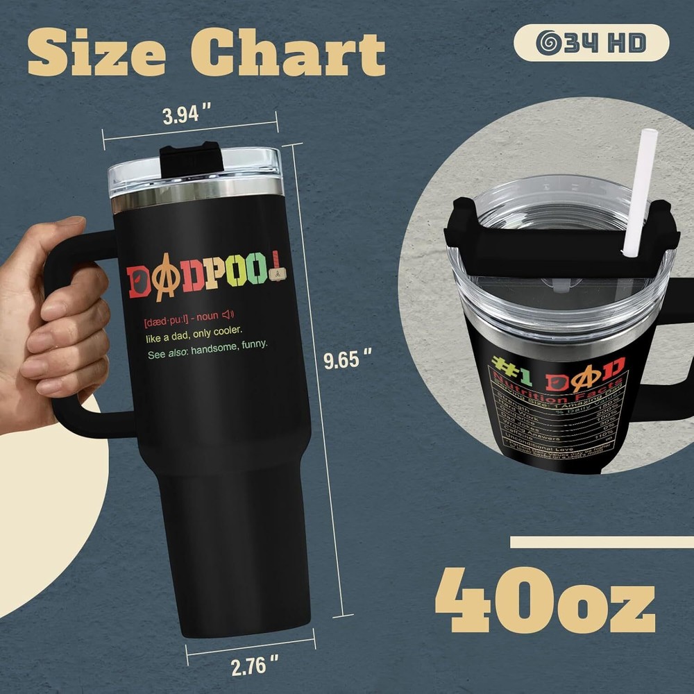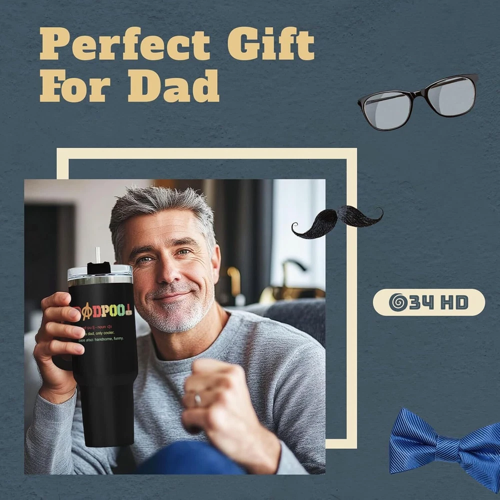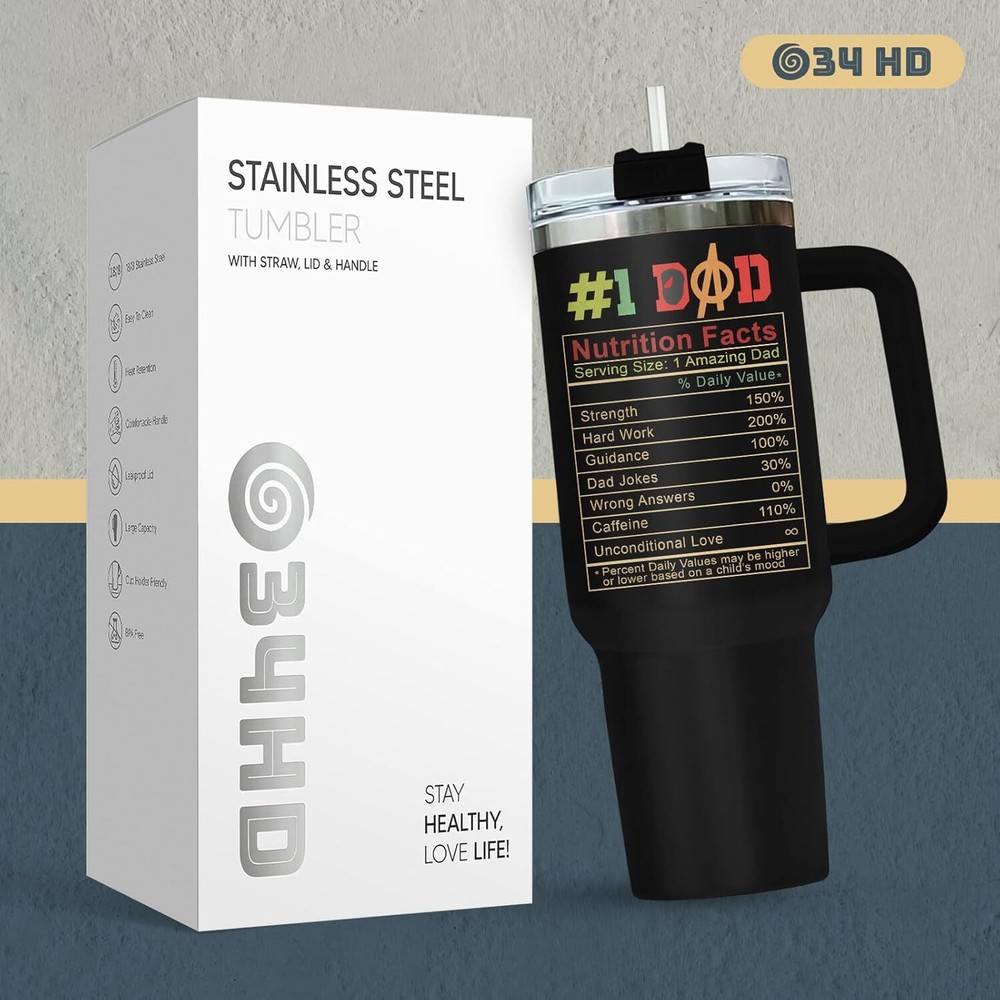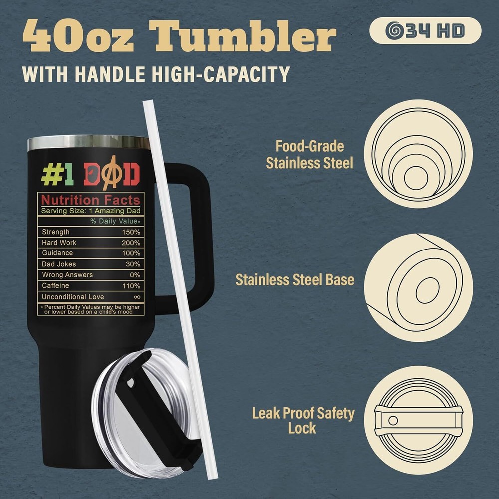 INSULATED COFFEE TUMBLER - Elevate your loved one's special days with this coffee tumbler featuring a design that’s both funny and meaningful. A unique themed coffee mug is a heartfelt way to show your love and appreciation for them. It’s a practical and thoughtful gift, perfect as a dad mug, dad drinking cup, dad travel mug, funny dad tumbler with handle, or dad tumbler cup. GIFT FOR MEN - Make his birthday even more special by showing him you care with our men travel cup. It’s the perfect choice for dad birthday gifts from daughter or son, unique gifts for men, cool gifts for male friend, Father’s Day gifts, and thoughtful presents for him who seem to have it all. TUMBLER WITH LID - Features a BPA-free flip lid and a leak-proof design, ensuring your hot or cold drinks stay secure. Our various designed tumblers are thoughtful boyfriend gifts, father daughter gifts, gifts for dad who wants nothing, present for grandpa, gifts for uncle, new dad gifts for men. HIGH-QUALITY MATERIAL - Carefully designed using 18/8 food-grade stainless steel, ensuring durability and longevity, these men tumblers are unbreakable, sweat-proof, and rust-resistant, making them perfect for everyday use. EXCELLENT TEMPERATURE RETENTION - With double-wall insulation, our tumblers keep hot and cold drinks at their desired temperatures, ensuring your beverage stays just right, no matter how much use it gets.