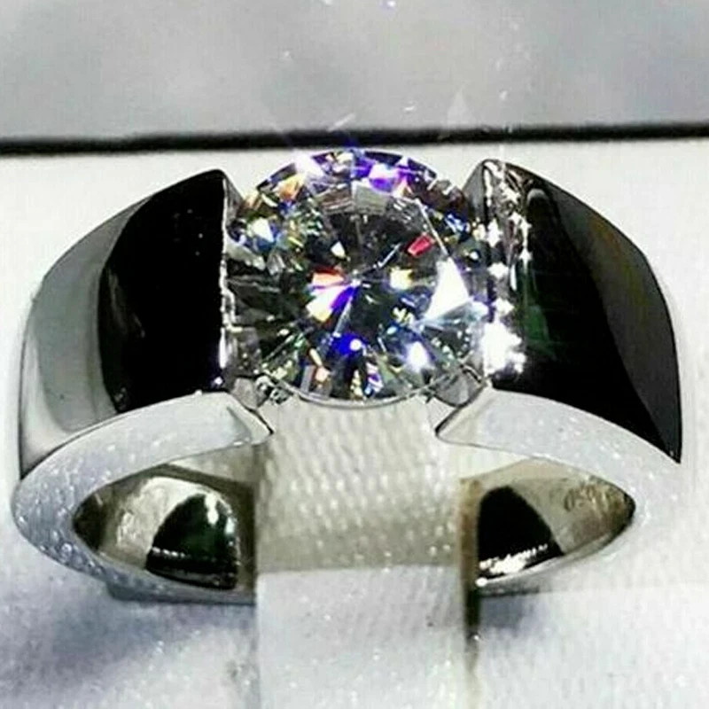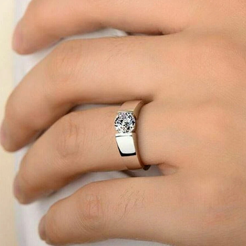 $ 46.761.40Ct Round Cut Moissanite Men's Solitaire Wedding Ring 14K White Gold Plated