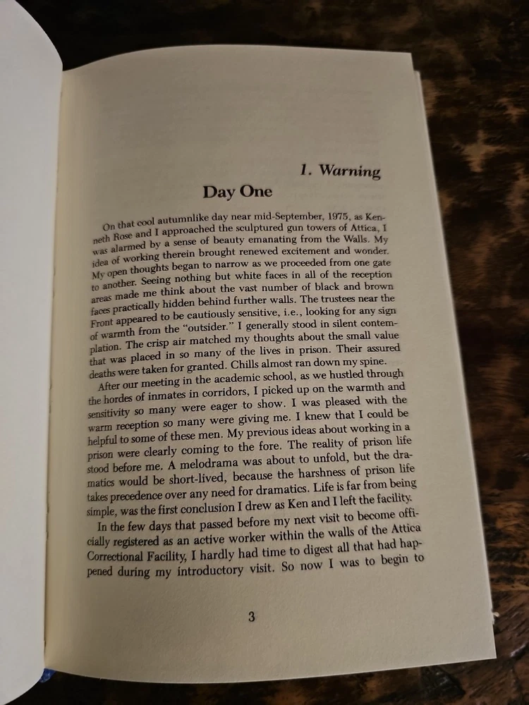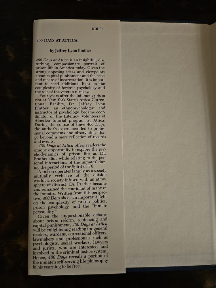 This powerful firsthand account from a trained clinical psychologist documents his 400-day immersion inside New York's notorious Attica Correctional Facility. With sharp insight into institutional racism, psychological struggle, and systemic reform, the book was praised by leaders at the NAACP and National Institute of Mental Health. Hardcover with dust jacket Binding tight, minor jacket wear No writing or highlighting inside Signature verified on dedication page Scarce title — particularly signed examples 💡 A vital addition to any library on criminal justice, African-American history, or Attica-related material.