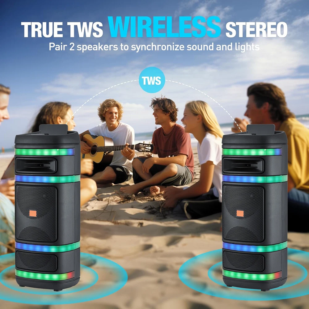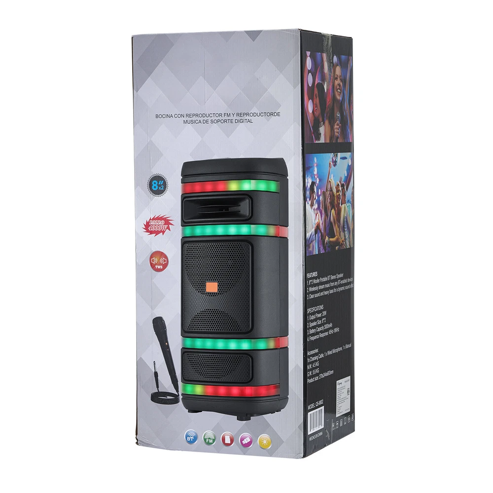 4000W Dual 8'' Portable BT Stereo Speaker with Mic, PA System with FM/TWS/EQ/LED Feature: The speakers are specially equipped with TWS (True Wireless Stereo) function, which can easily realize the left and right channel wireless crosstalk and bring immersive stereo sound effect. At the same time, the addition of LED indicators not only adds a sense of technology to the product, but also shows the working status of the speakers in real time, allowing you to keep track of the dynamics of the speakers. In order to meet the needs of use in different scenarios, the speaker is designed with two microphone jacks to support external microphone, whether it is Karaoke, speech or meeting, it can be easily dealt with. In addition, the built-in EQ (Equalizer) function allows you to adjust the sound effect according to your preference, whether it is low rock, exciting jazz or soft classical music, you can find the most suitable sound quality performance. In terms of audio input, the speakers support memory card, Bluetooth, FM radio and AUX port, etc., with strong compatibility and convenient connection. Built-in 18650 lithium-ion battery with a capacity of up to 3000mAh ensures a long time of use. After one full charge, it can continue to play for 5 hours to meet your long time entertainment needs. The speaker supports AC 100-240V 50/60Hz wide voltage input, so you can easily charge it no matter where you are. The output power reaches 20W, and the peak power is up to 4000W, bringing you a stunning sound experience. Two 8-inch speaker units provide a wide sound range and deep bass, making music more full and powerful. In terms of exterior design, the stereo adopts a black plastic cabinet, which is simple and stylish. The sturdy and durable material ensures the stability and durability of the product in different environments. Specification: Audio Input:Memory Card/Bluetooth/FM/AUX Built-in Battry: 18650 li-ion battery Battery capacity:3000mAh Charging time: 5-8 hours Play time: 5 hours (fully charged) Input Voltage: AC 100-240V 50/60Hz Output Power: 20W Peak Watt: 4000w Speacker Size:8''*2 Color:Black Material: Plastic cabinet TWS EQ MIC 1 / MIC 2 interface Package: 1 x Party Speaker 1 x Charging Cable 1 x Wired Microphone 1 x User Manual Delivery details Payment Terms of sales Feedback Contact us Delivery details 1. BUSINESS DAY MONDAY- FRIDAY FAST SHIPPING FROM USA. 2. All orders and payments received before 4PM EST (1PM PST) will be shipped the same business day. 3. No shipping on Saturday,Sunday or USA Public Holidays 4. No responsibility for any custom duty Payment We accept payment by PayPal only. Terms of sales 1. We offer a 60 day money back guarantee or exchange. 2. Buyer pays return shipping and we pay replacement shipping. 3. If you want to initiate a return,please contact us to get a returning address before sending the item back. Feedback 1. We strive to provide the best products and services. 2. Your positive feedback 5 stars DSR help us do better. 3. If anything about your transaction did not meet expectations, please CONTACT US and give us the opportunity to make things right. We are always here to help. Contact us Please do not hesitate to CONTACT US . You can message 24/7 on eBay for all questions and inquiries. We will get back to you within one business days at the latest from Monday- Friday.
