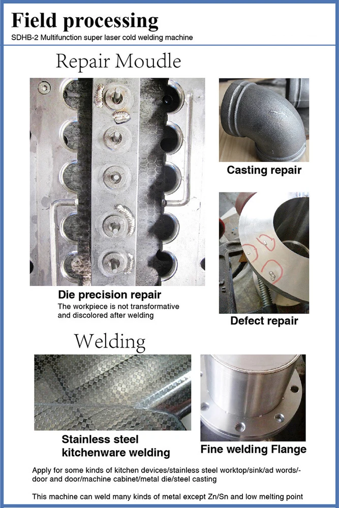 High Precision Multifunction Cold Welding Machine Stainless Steel Metal Moulds Repair Welding 220V Fast Shipping DHL OR EMS (This item is 220V, do not support 110V) New high precision welding cold welding repair machine for die imitation laser welding of thin steel plate splicing welding Main Characteristics: 1) Fully LCD digital display, accurate output and stable current, it has data storage and can be called at any time. 2) Complete metallurgical welding, repairing can be ground, milled, filed and other post-processing. Less damaged and small heating area, which will not cause the substrate to anneal and deform. 3) High repair accuracy, all kinds of welding wires can be used, welding wire materials with different diameters (0.2mm-2.0mm) can be selected for welding according to different welding repair. 6) Wide application: - Suitable for welding various plastic molds, stamping dies, die-casting dies, mechanical parts, castings, copper parts, aluminum parts, and stainless steel sheets. Except for low melting metals such as zinc tin, all kinds of metals can be welding repaired. 7) Large voltage range: - Using switching power supply, when the voltage change fluctuates within ± 15%, the machine can still guarantee normal work and maintain stable output power. Specification: Model: SDHB-2 Voltage: AC220V Output power: 0-4000W Instantaneous power: 40KW Output current: 1-200A Frequency: 1-10Hz Welding mode: spot welding, continuously welding, arc welding Can use welding wire: Φ0.3-2.0mm Dimension: 360*150*260mm Weight: 9kg Portable cold welding machine, precision repair sheet welding 1. Your valid phone number is very necessary for the shipping, otherwise we can't guarantee that the package would safely arrives. 2. Any Customs tax applied to this package should be covered by buyers. 3. As has been stated on the eBay item description, Import duties, taxes and charges are not included in the item price and shipping charges. These charges be at the buyer responsibility. meanwhile the customs tax depend on the buyer local customs office. What in Package: 1 x 220V SDHB-2 Cold Welding Machine Tool Kit Contact Us: 1. We have always been trying to provide the best service and reliable products for every customer, however, accident may happen sometimes, please contact us to resolve any issue before leaving a negative feedback. 2. Please contact us by "Ask a question". Payment 1. Payment methods accepted: Paypal only. 2. Payment must be received within 7 business days of auction closing. Shipping 1. We ship your orders within 1-3 business days after the payment received. 2. Item shipped via Singapore Post or HongKong Post, It takes about 7-30 business days(USA,CA,AU,UK). Others country 10-20 business days(Brzil,India,RU), Exact delivery time depends on postal process. 3. If you do not receive your item(s) by 30 business days, Please feel free to contact us via ebay mail system, we will try our very best to resolve any problems with you. Return Policy 1. Return is accepted within 30 days after the buyer's receiving the item. 2. If this item is defective upon receipt, customer has up to 14 days from date of receipt for exchange of a new one. 3. Unused/unopened merchandise will be fully credited. Other Policies We are not responsible for any custom duty or import tax. If you need we write low price on shipping bill, pls leave message when you make payment. All emails will be answered within 24 hours. If you do not receive our reply, please kindly re-sent your email and we will reply to you as soon as possible, Suggest send eBay message to us, That is easy to find.