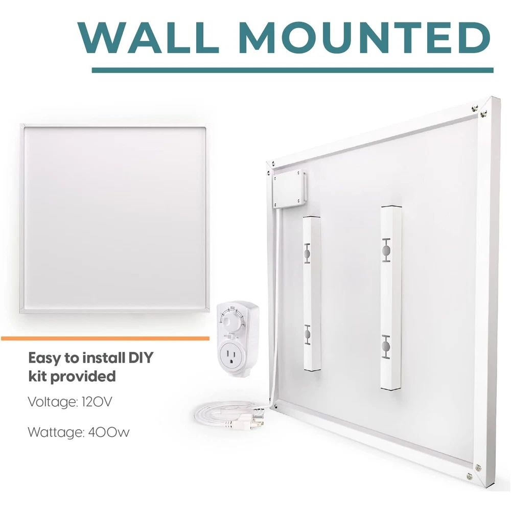 Stay Warm & Comfy - Don't let low temperatures ruin your day. Our wall mounted heater uses infrared technology to deliver long-lasting and focused warmth that won't be affected by winds or drafts. Maximize Floor Space - Have you had it with clunky or heavy indoor space heaters that take up so much room? Our infrared heaters for indoor use feature a slim profile and may be mounted at any height. Breathe In Clean Air - This 400W indoor or outdoor infrared heater generates heat quickly and evenly. The fanless wall mount heater operates with minimal sound and doesn't kick up dust, fur, or hair. Safety Comes First - Designed with your safety in mind, our wall mount heaters for indoor use comes with overheat protection technology, and are designed to meet strict quality and safety standards. Mount It Anywhere - You can count on our energy efficient heaters for indoor use or outdoor use. It may be installed in your bedroom, living room, study, bathroom, patio, terrace, garage, or balcony.